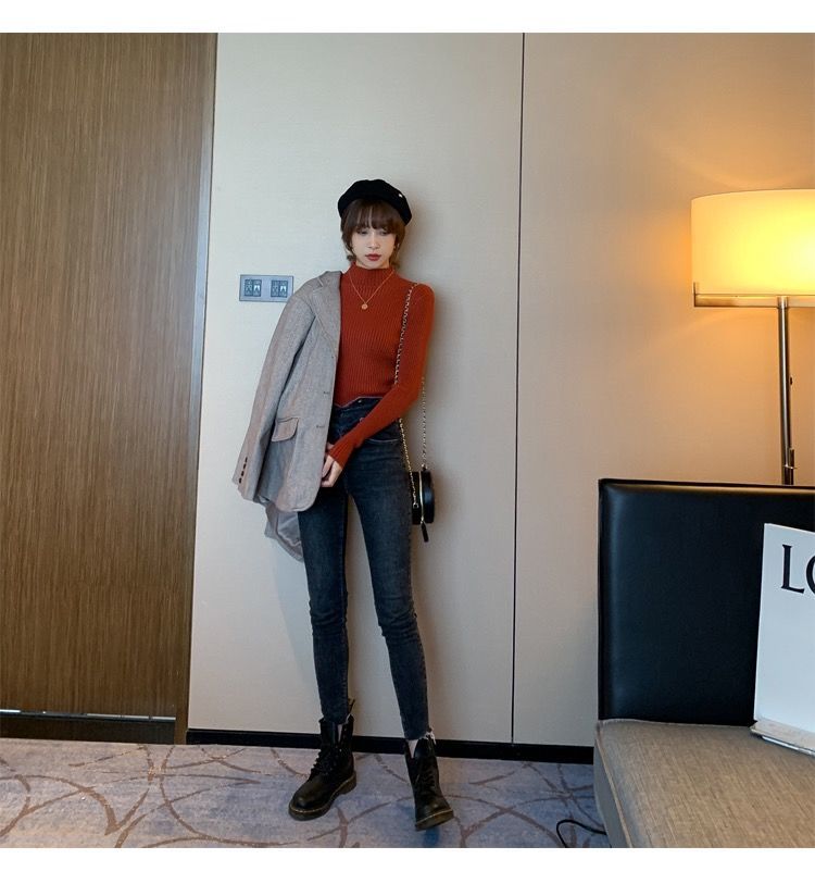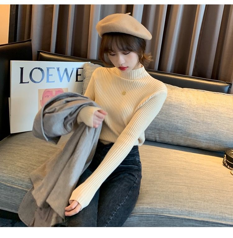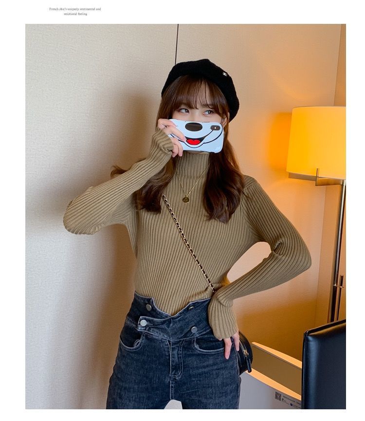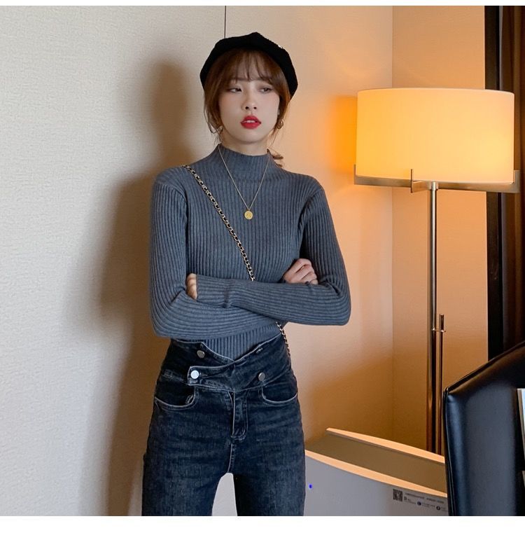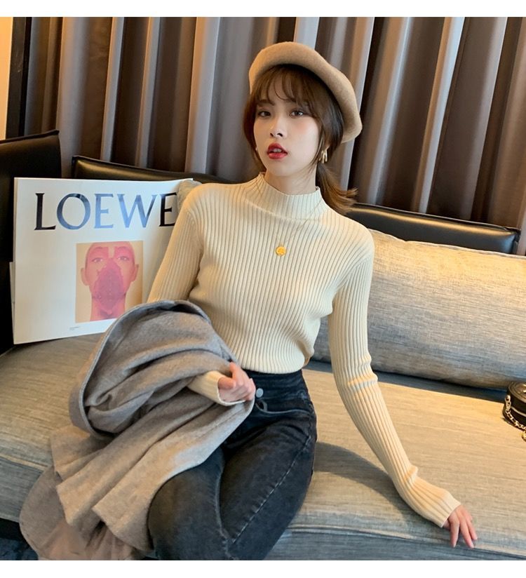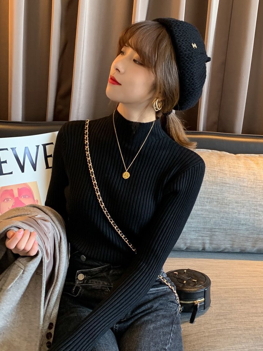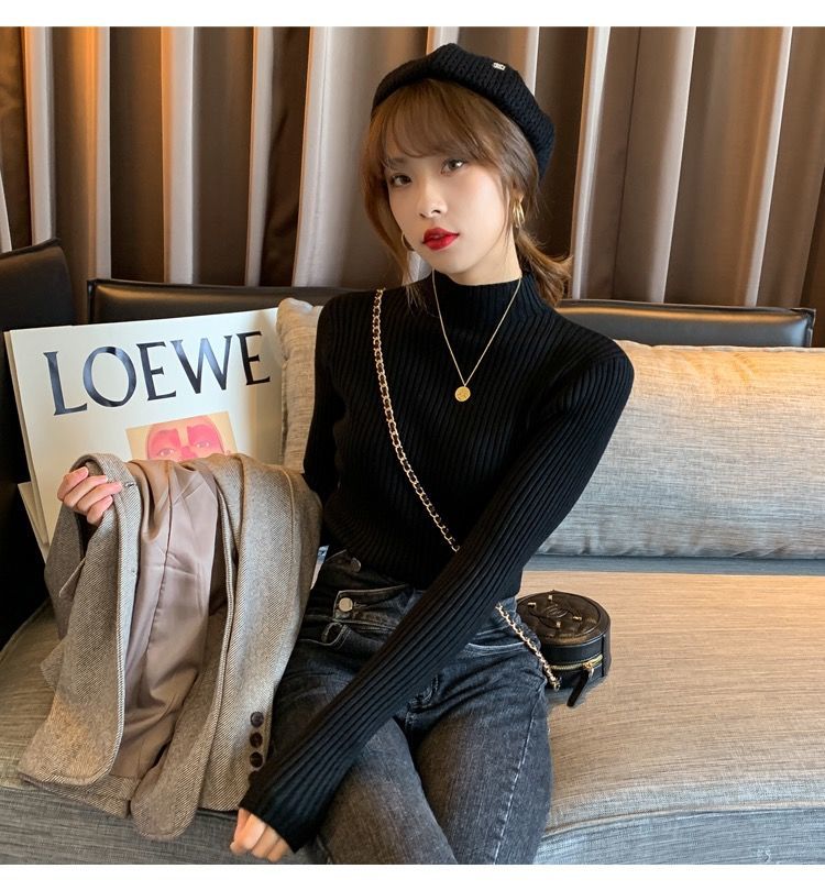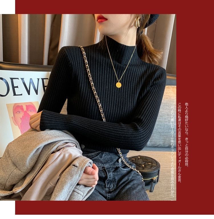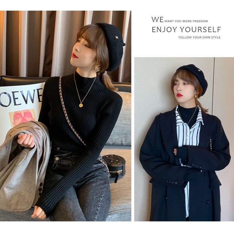 【细腻感受】经典坑条半高领外穿毛衣打底衫秋冬韩版修身内搭针织衫女上衣