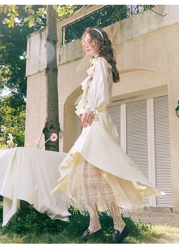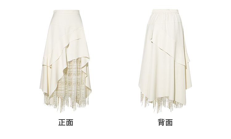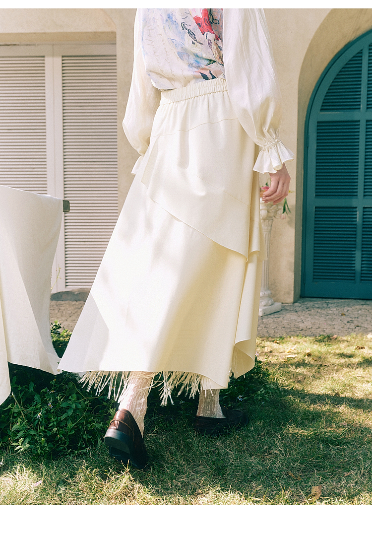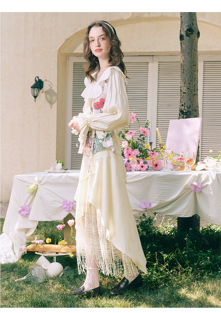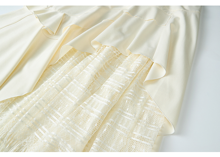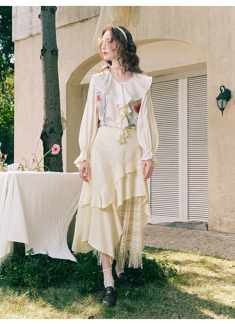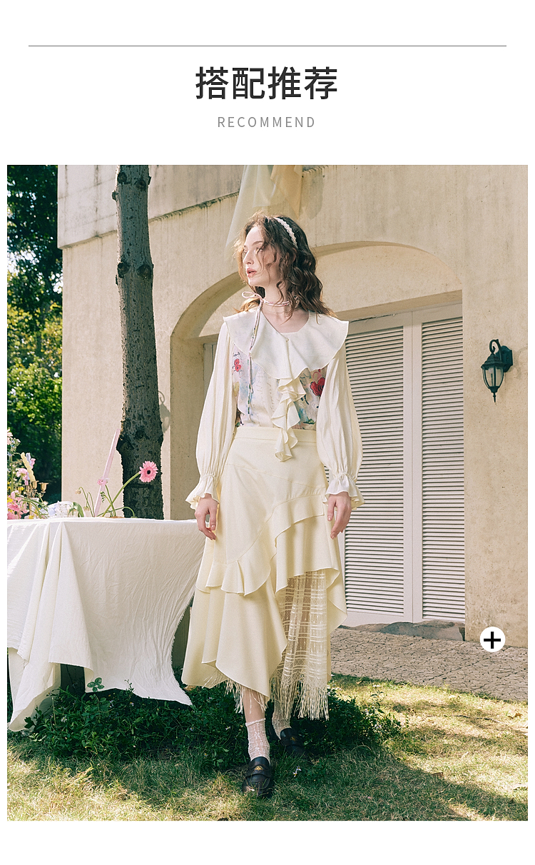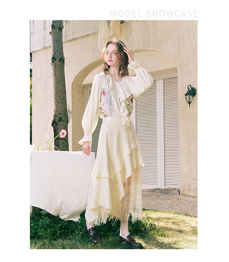 两三事微风浅夏2026春季新款层层荷叶边蕾丝拼接不规则半身裙长裙
