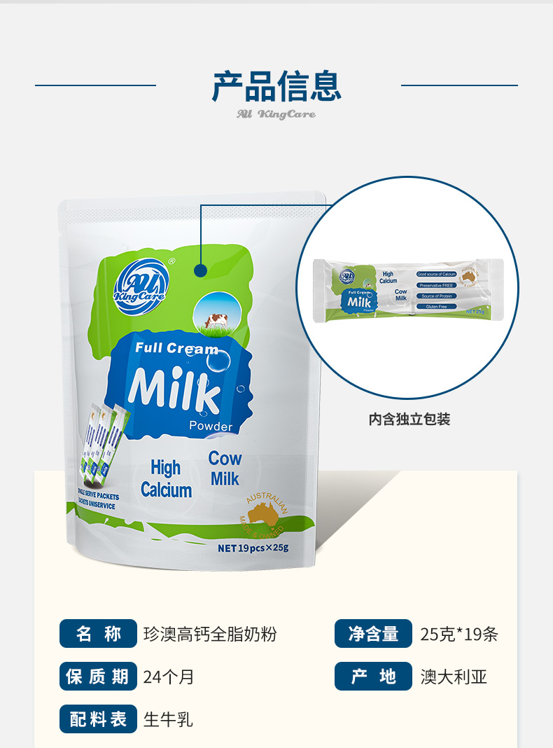 Au Kingcare 珍澳高钙全脂速溶奶粉便携装