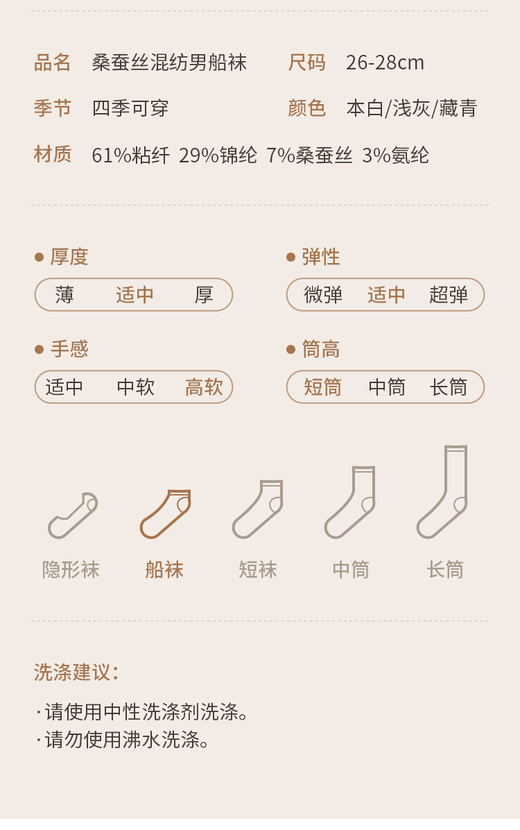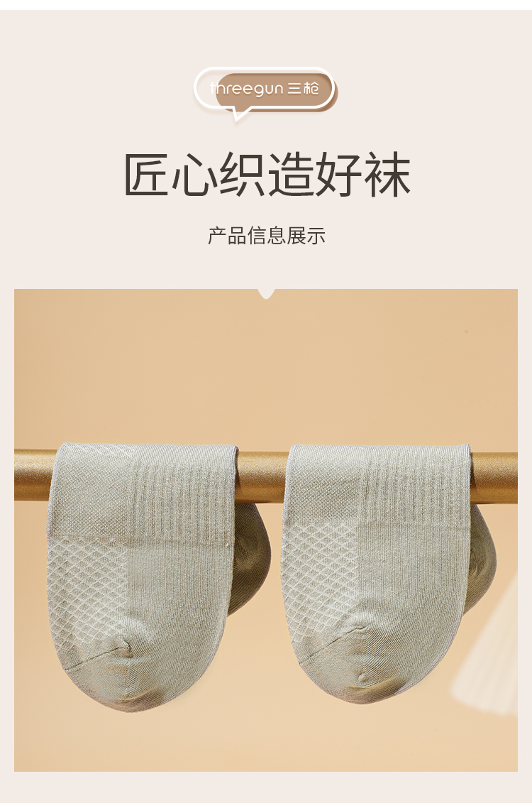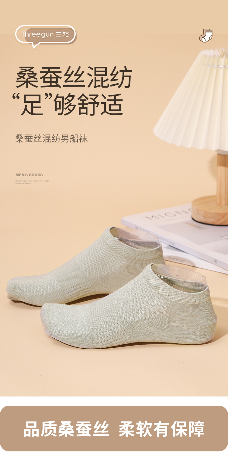 Threegun三枪 桑蚕丝混纺男船袜(1双装)-91337Z031