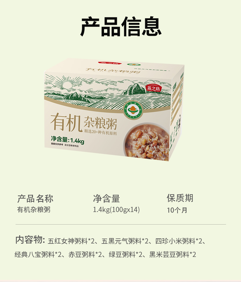 燕之坊元气有机7日杂粮粥1.4kg 营养早餐粥料【一周不重样】