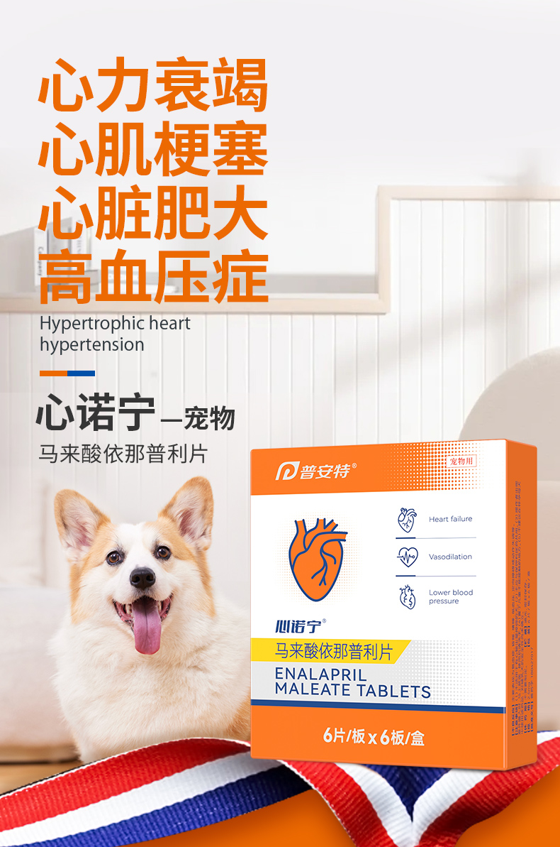普安特宠物心脏病心脏肥大药宠物心力衰竭心肌炎症梗塞心诺宁马来酸依那普利片