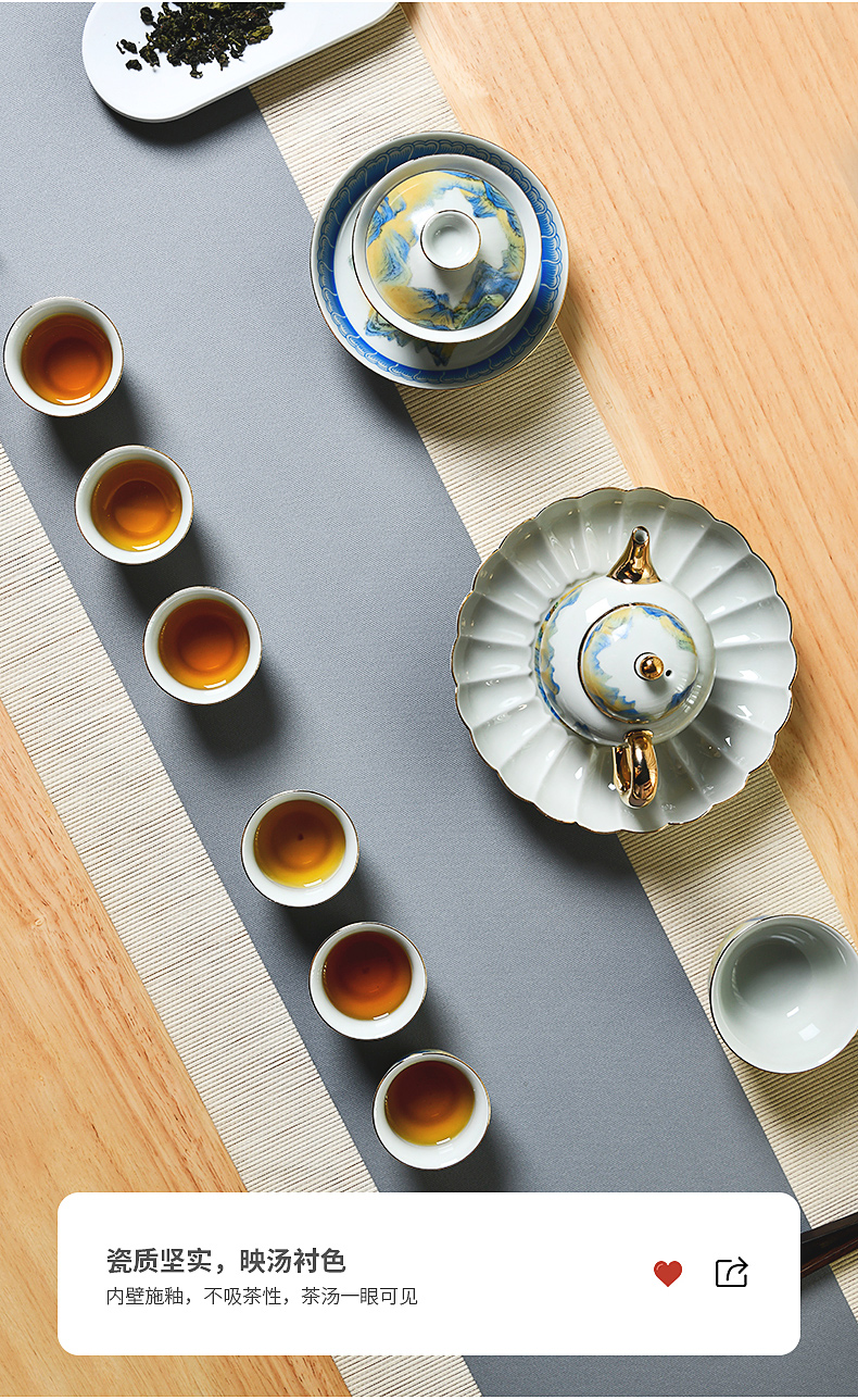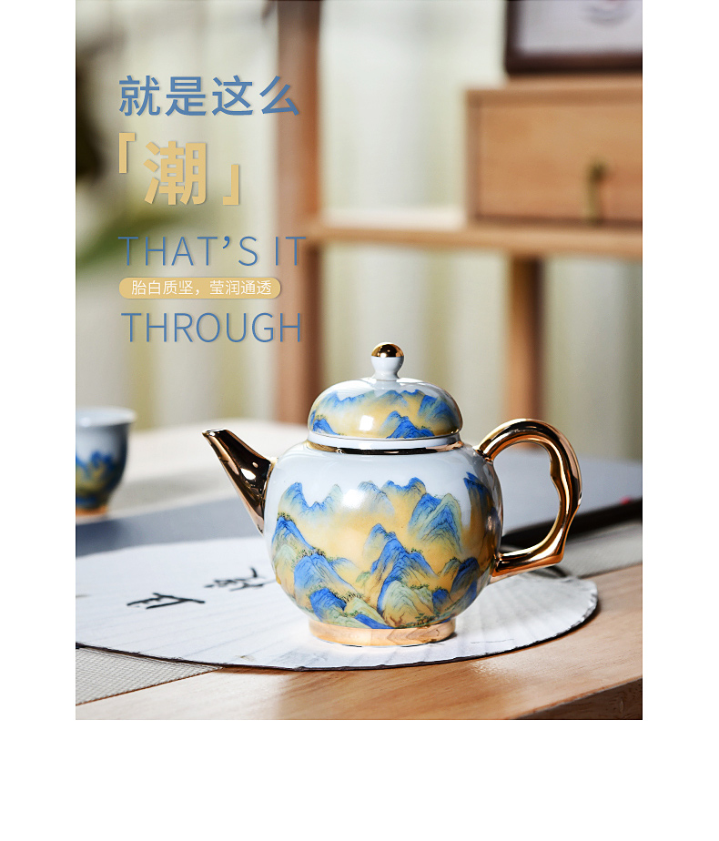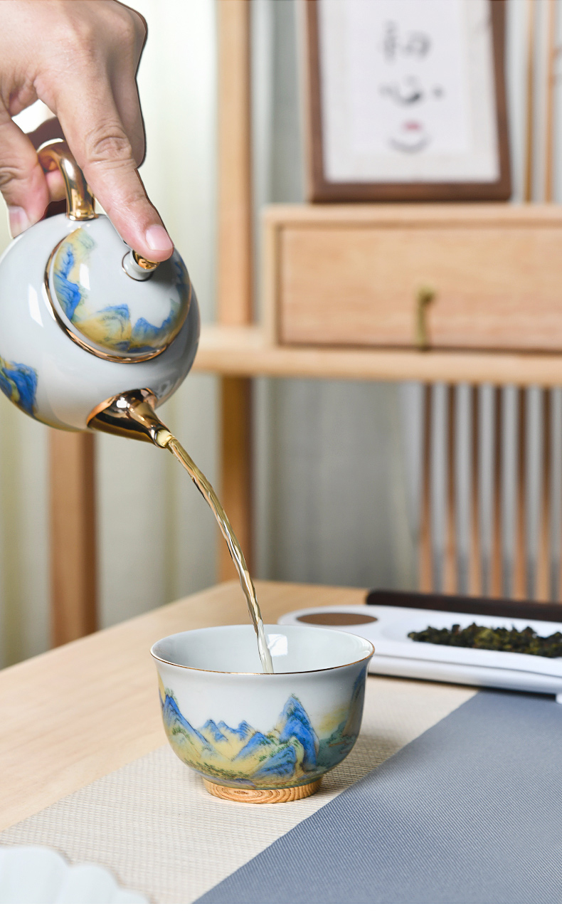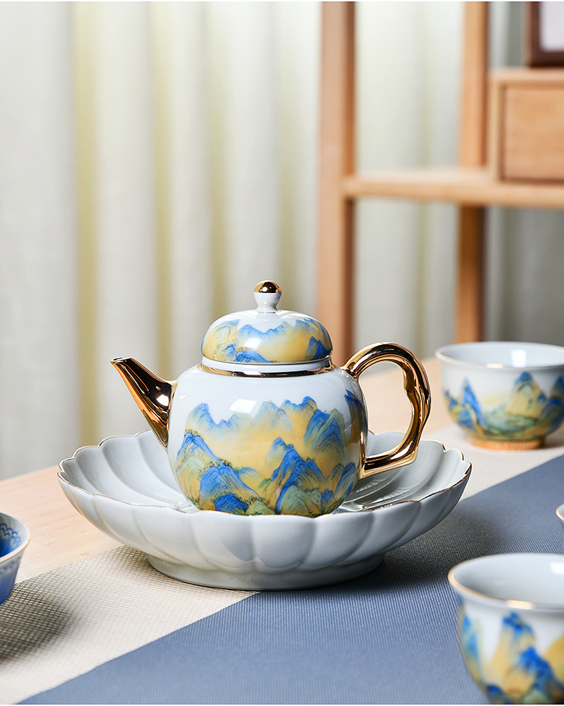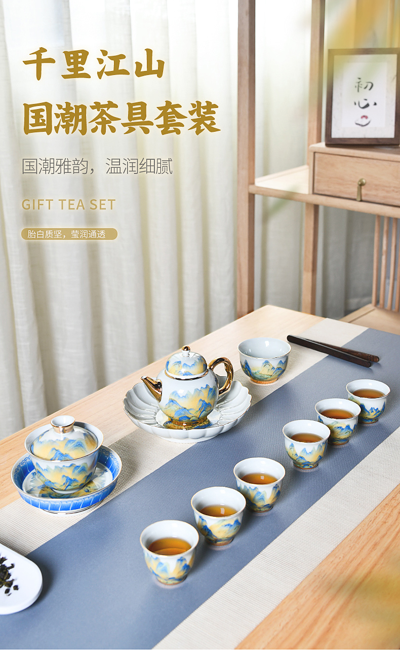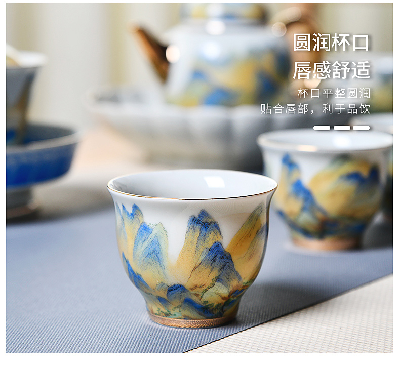 成艺德化陶瓷 千里江山鎏金功夫茶杯茶碗茶具套装
