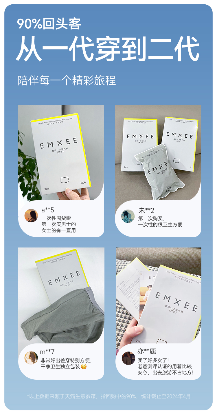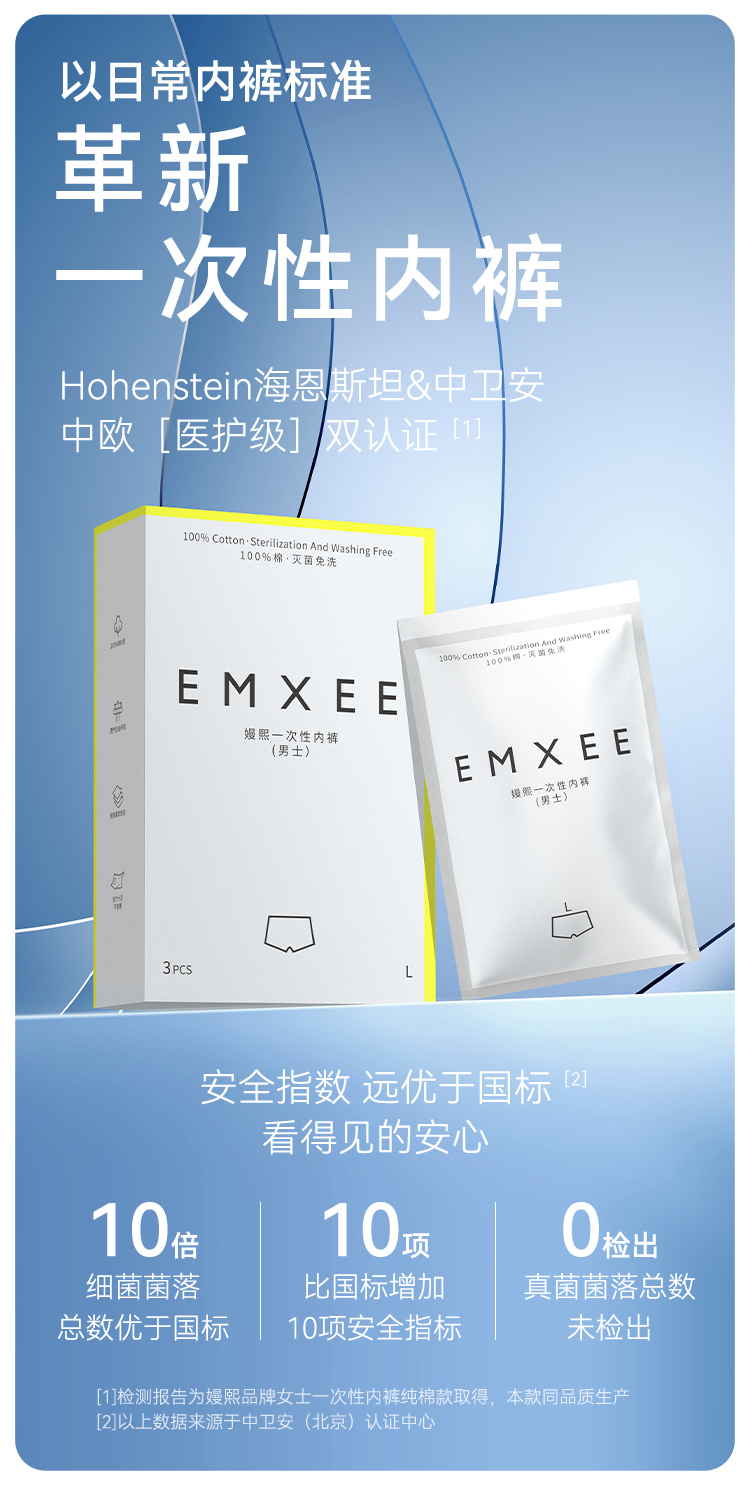 【一次性用品】嫚熙E3男士一次性内裤无菌纯棉男式四角平角短裤旅行免洗大码
