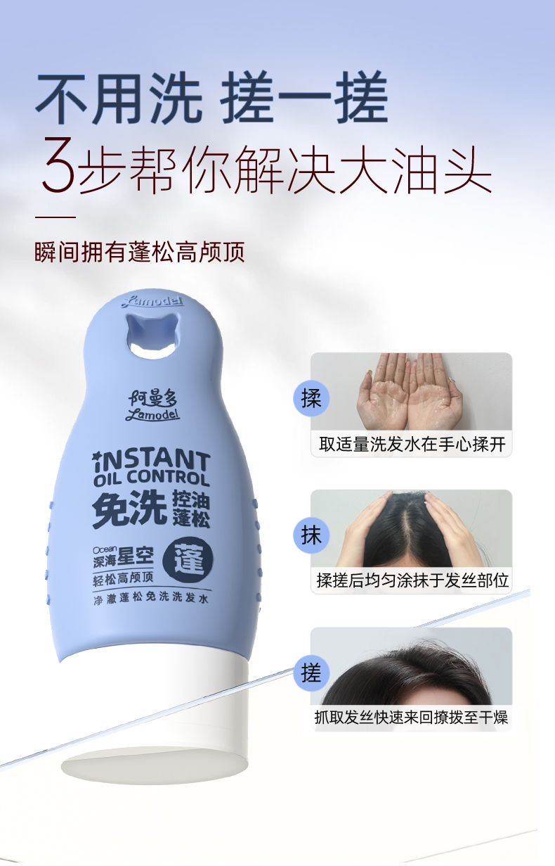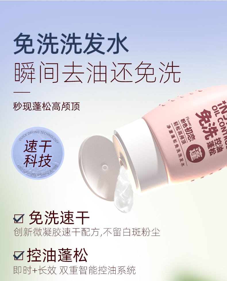 应急必备【净澈蓬松免洗洗发水】免洗速干 秒变蓬松高颅顶 3分钟快速出门!凝胶质地 速干不留白 上班外出携带方便!使用吹风机效果更快