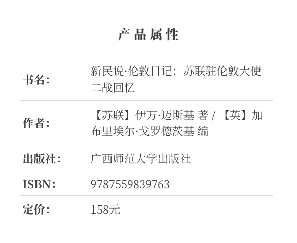 新民说·伦敦日记:苏联驻伦敦大使二战回忆—— [苏联]伊万·迈斯基 著 / [英]加布里埃尔·戈罗德茨基 编 广西师范大学出版社