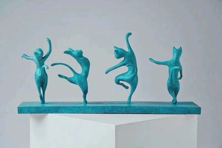 路小伍雕塑《猫之舞》尺寸:60*14*28cm材质:铜着色限量:18