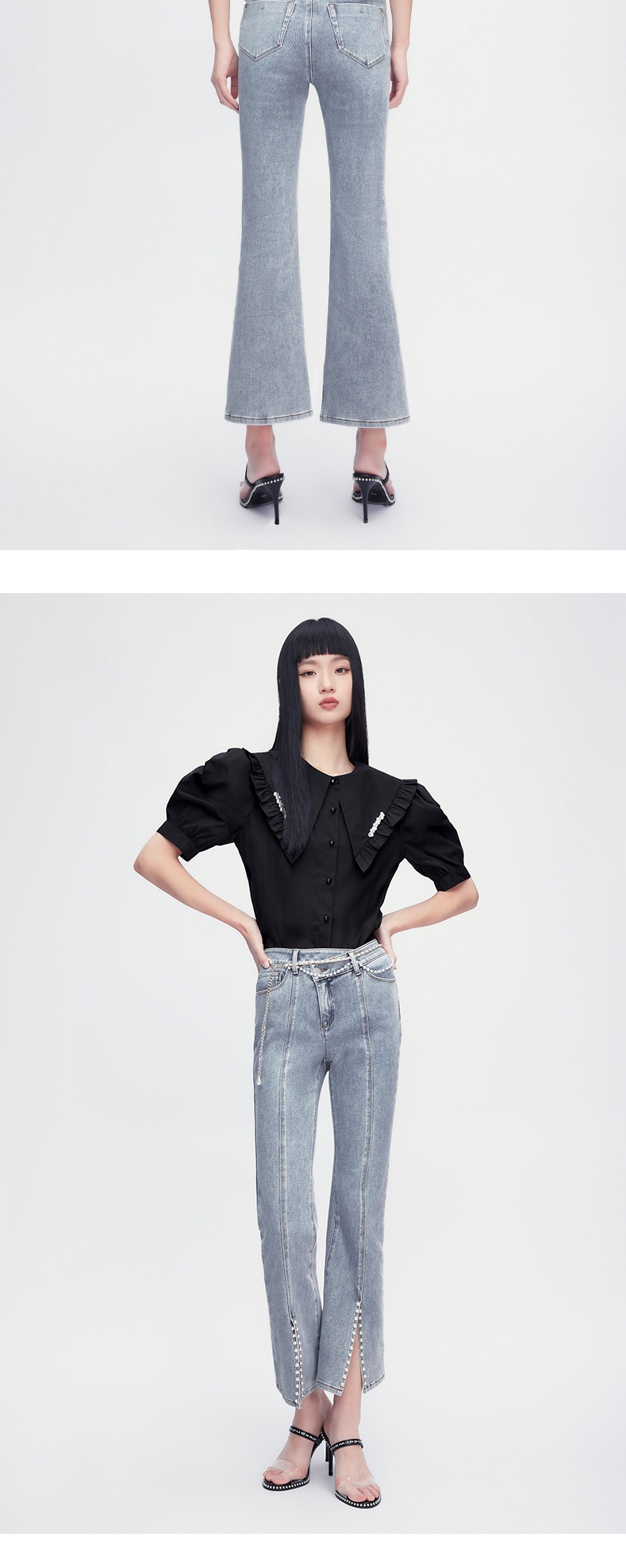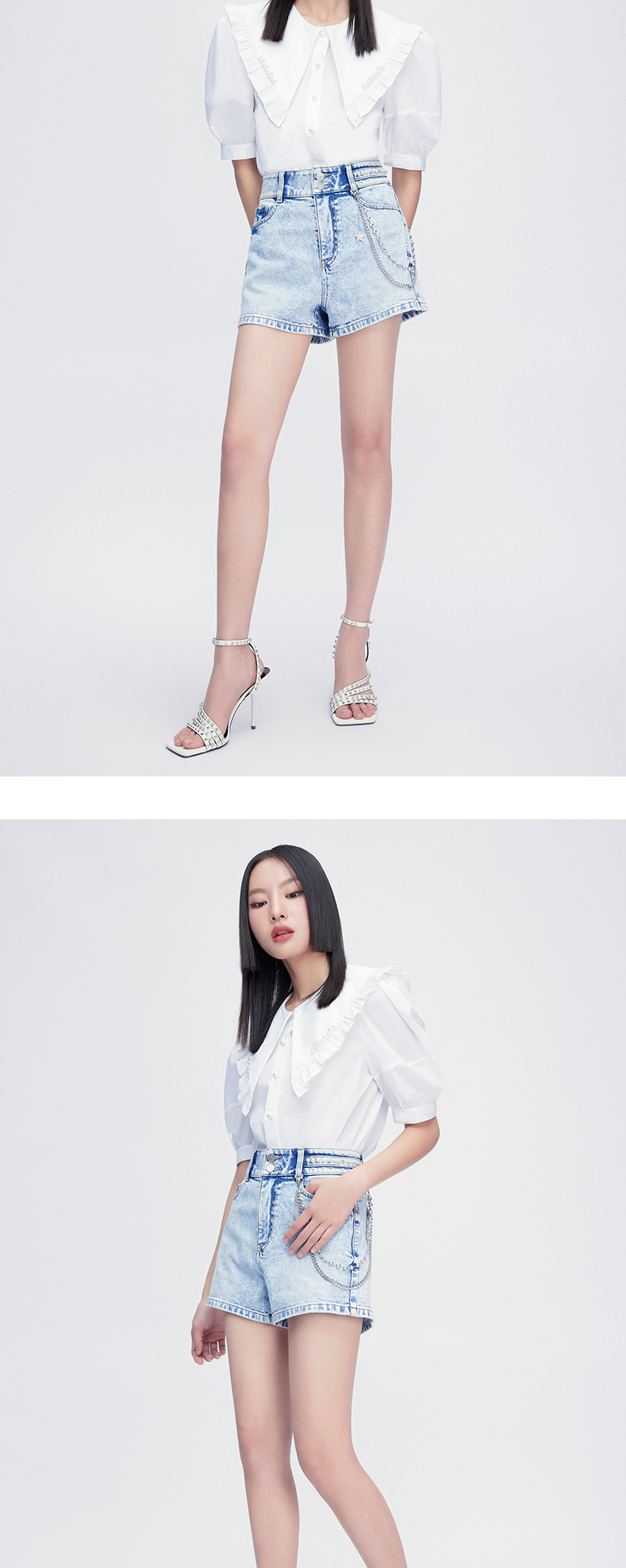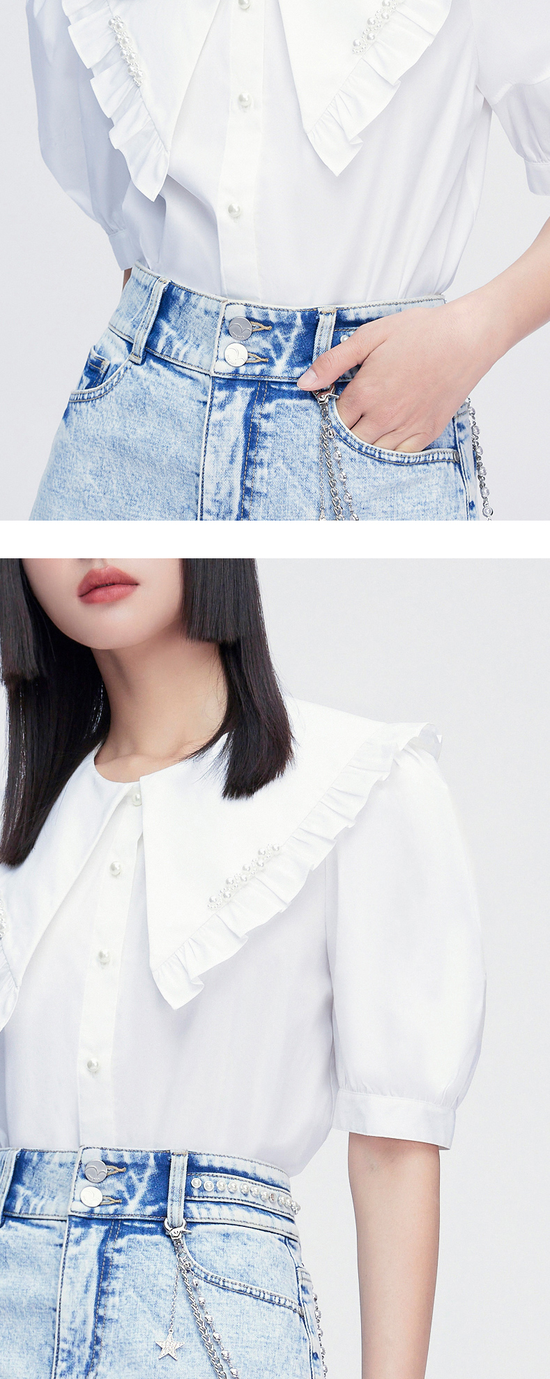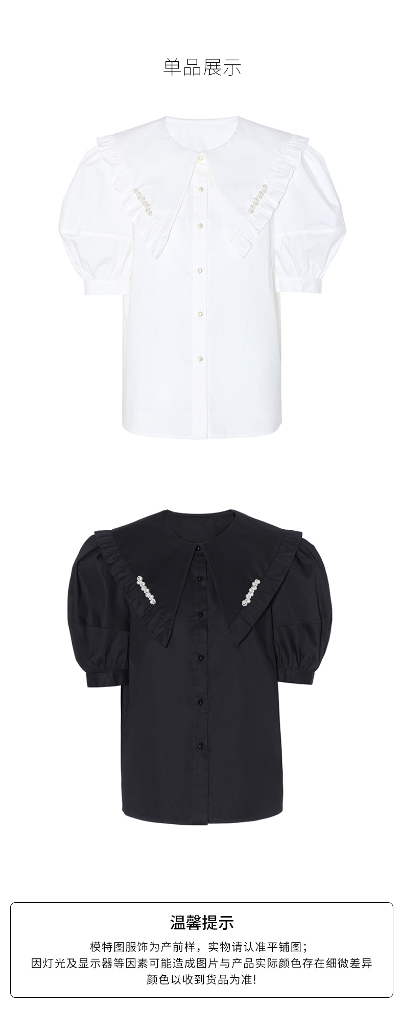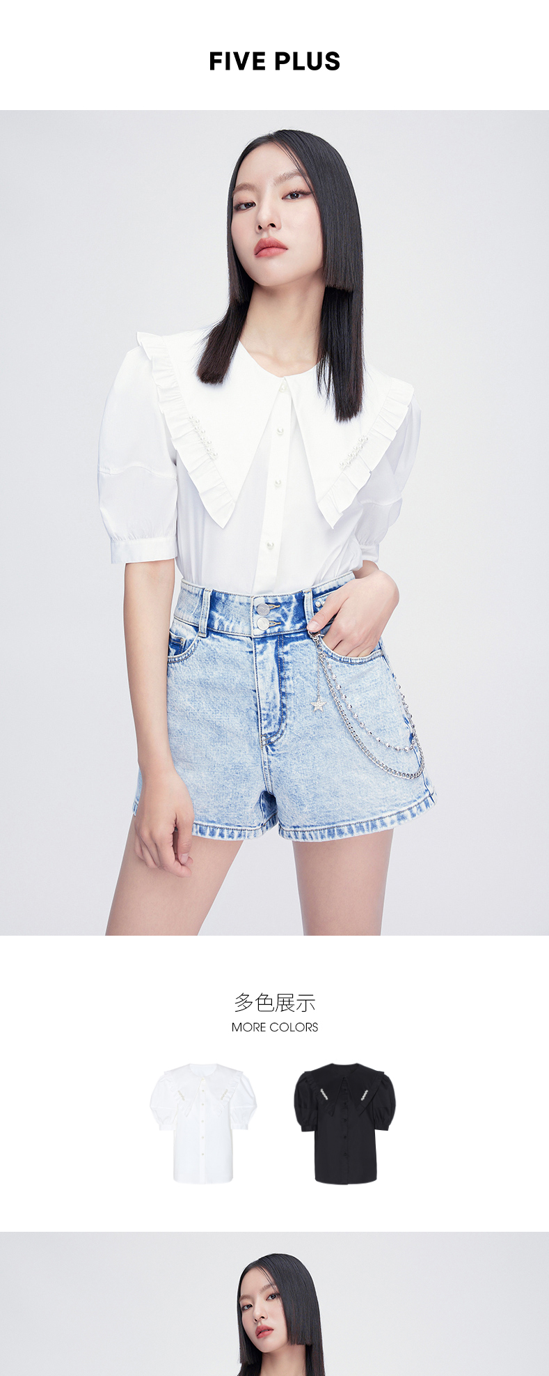 FIVE PLUS2022新款女夏装少女感大翻领衬衫女复古泡泡袖小众上衣2WN2012300