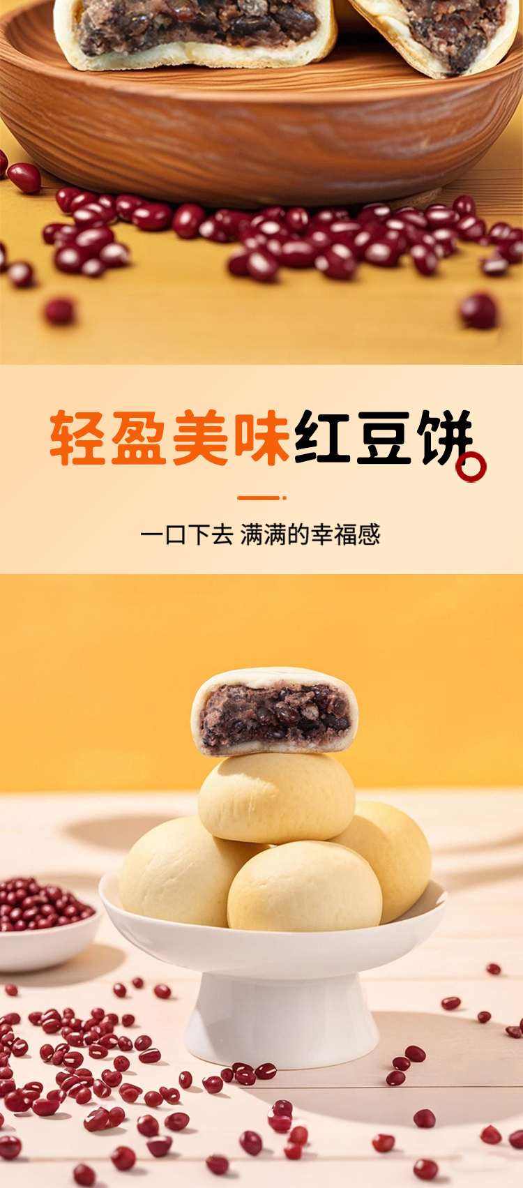 【粒粒红豆饼】香甜软糯,内馅饱满,精选上等红小豆,保留原汁原味,不添加,纯天然!