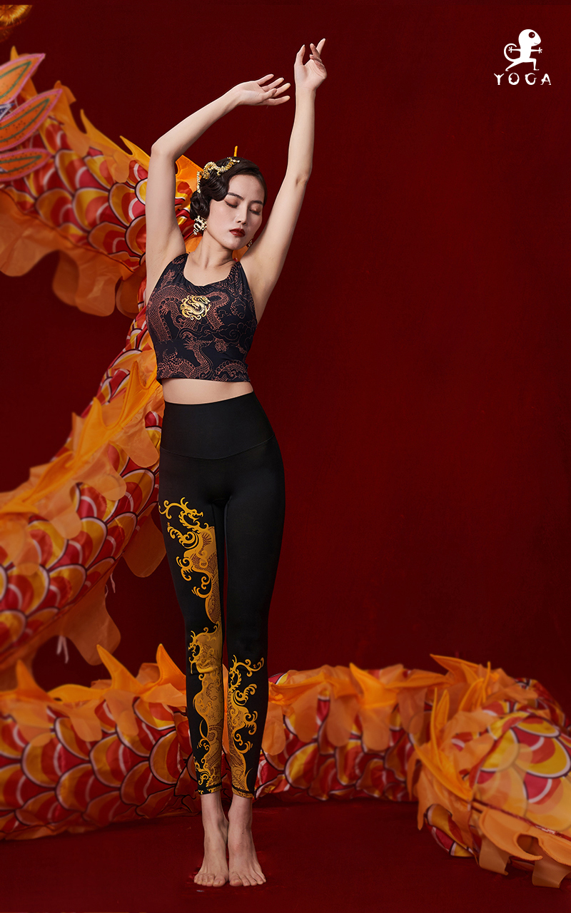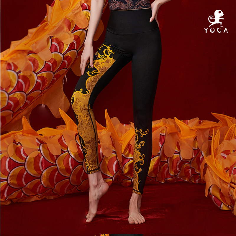 壁虎瑜伽【龙行天下-裤子】限量款印花瑜伽9分裤 【可定制】(标准码)清仓不退不换