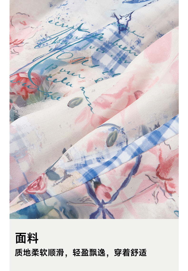 两三事 森灵绮梦 2025夏季新款小清新印花拼色绑带吊带裙连衣裙