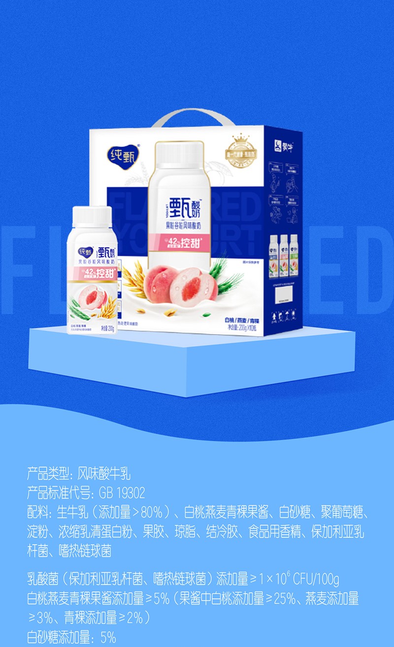 蒙牛甄酸奶白桃燕麦青稞果粒酸奶200g*10盒