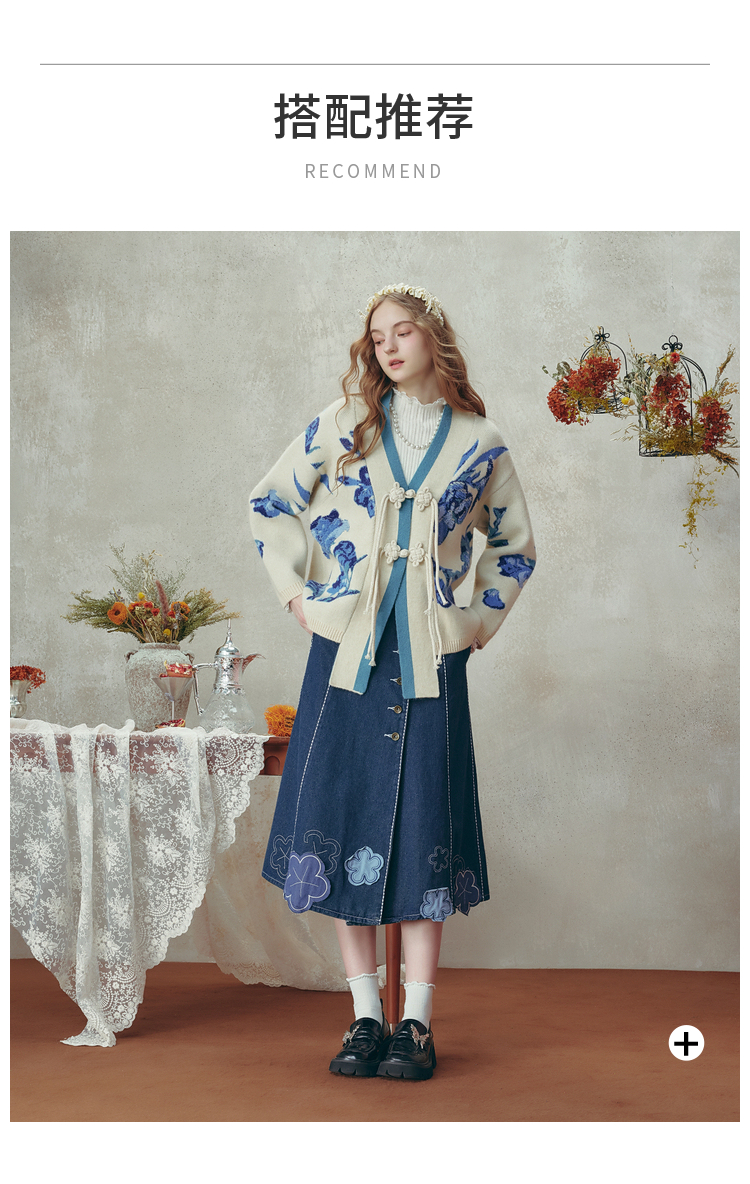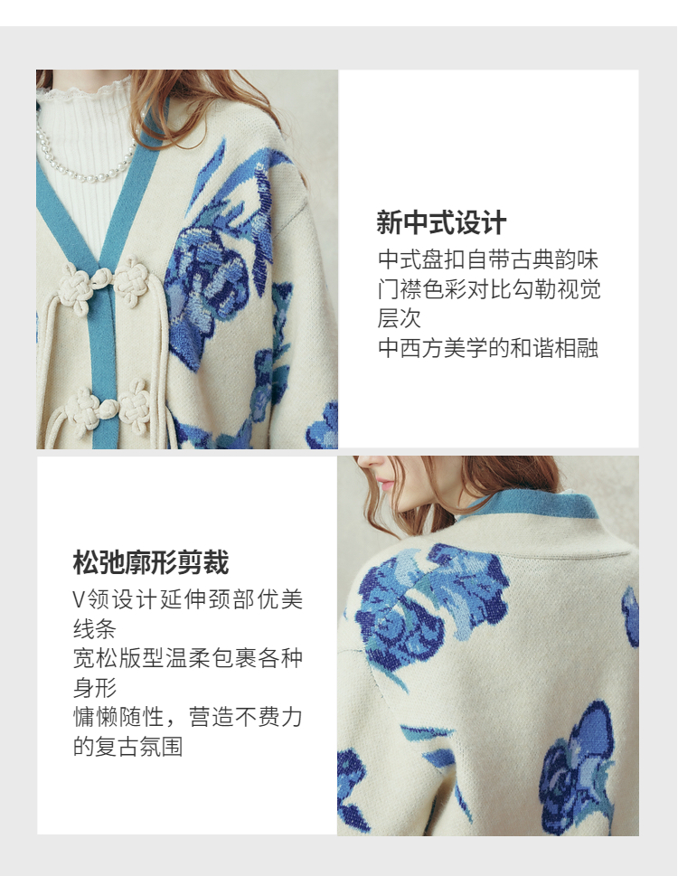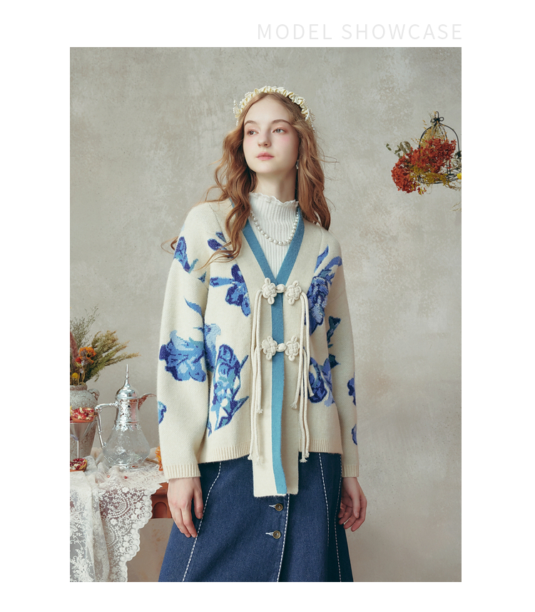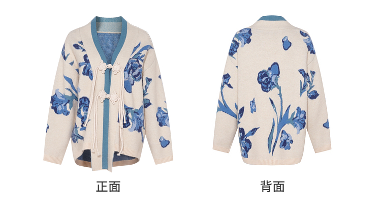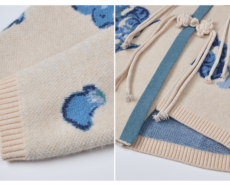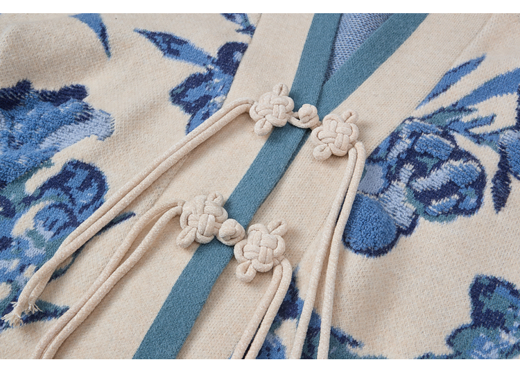 两三事梵高文艺繁花协奏2025冬季新款新中式提花绣盘扣毛衣开衫女