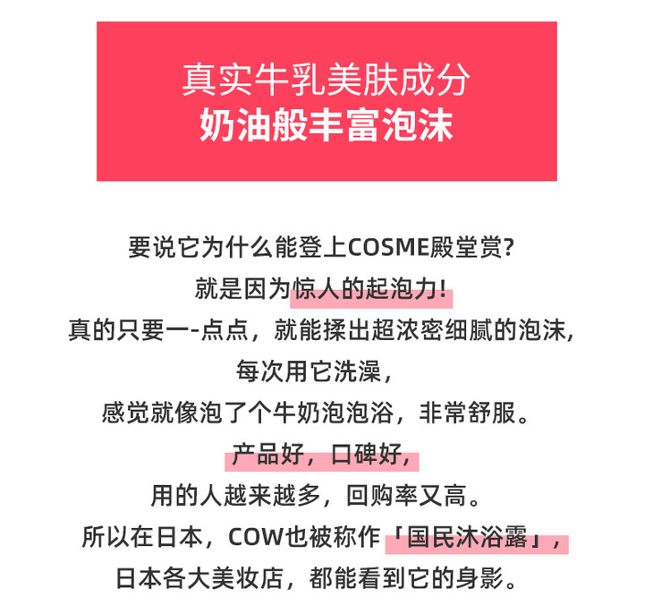 日本Cow/牛乳石碱沐浴露超绵密泡沫持久留香保湿嫩白牛奶沐浴乳480ml
