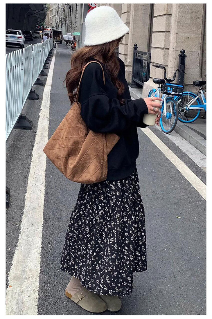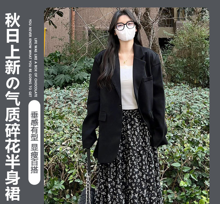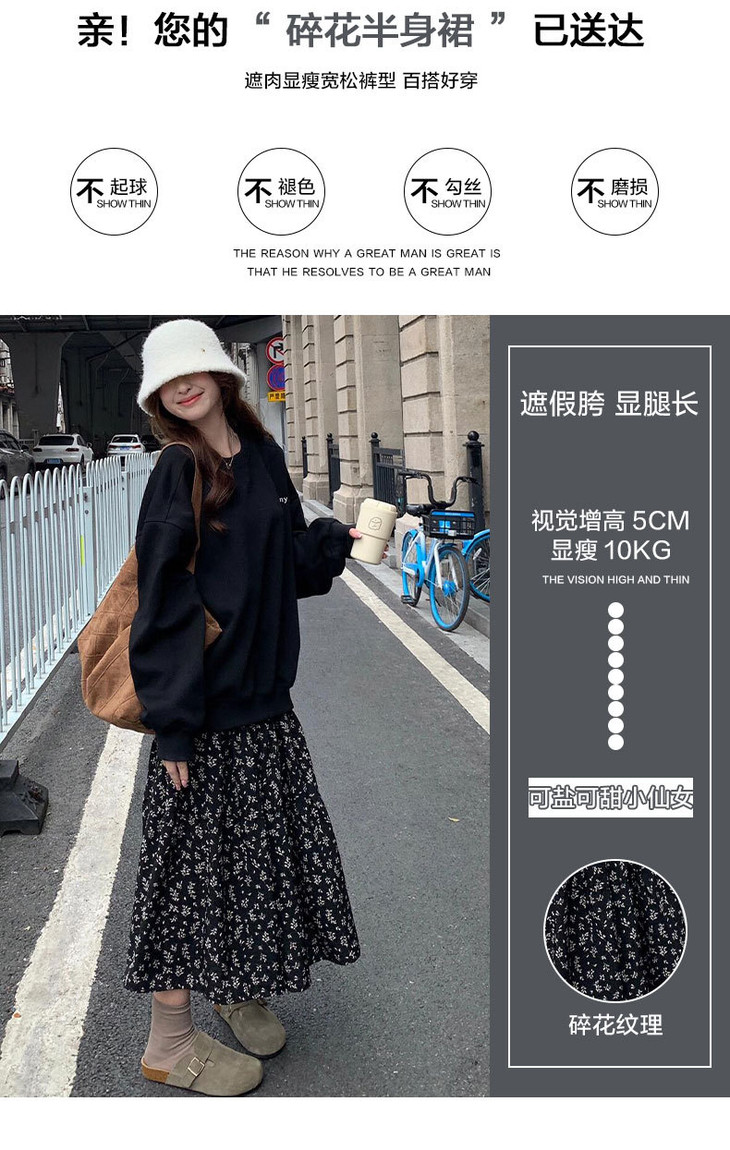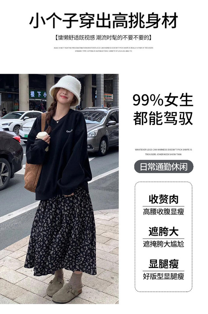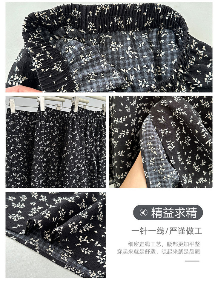 黑色碎花半身裙女夏2025新款高腰显瘦a字半裙小个子蛋糕长裙