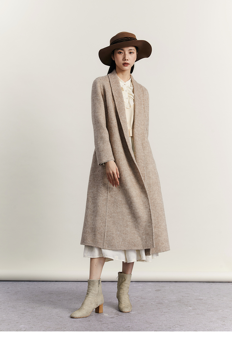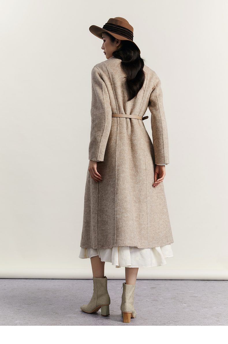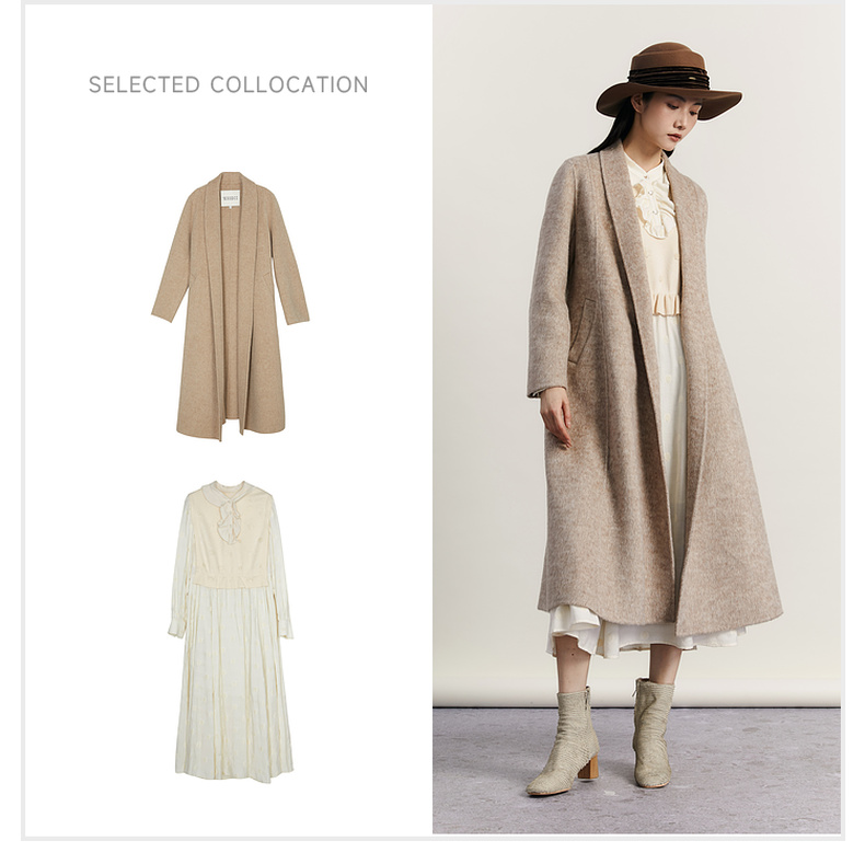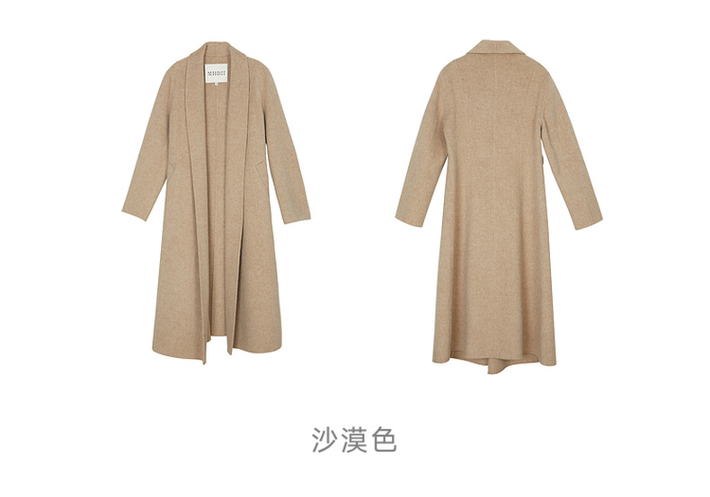 谜底羊毛呢大衣女2023冬新品极简风气质翻驳领长款呢子234GD1509