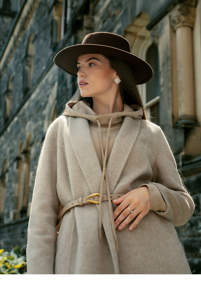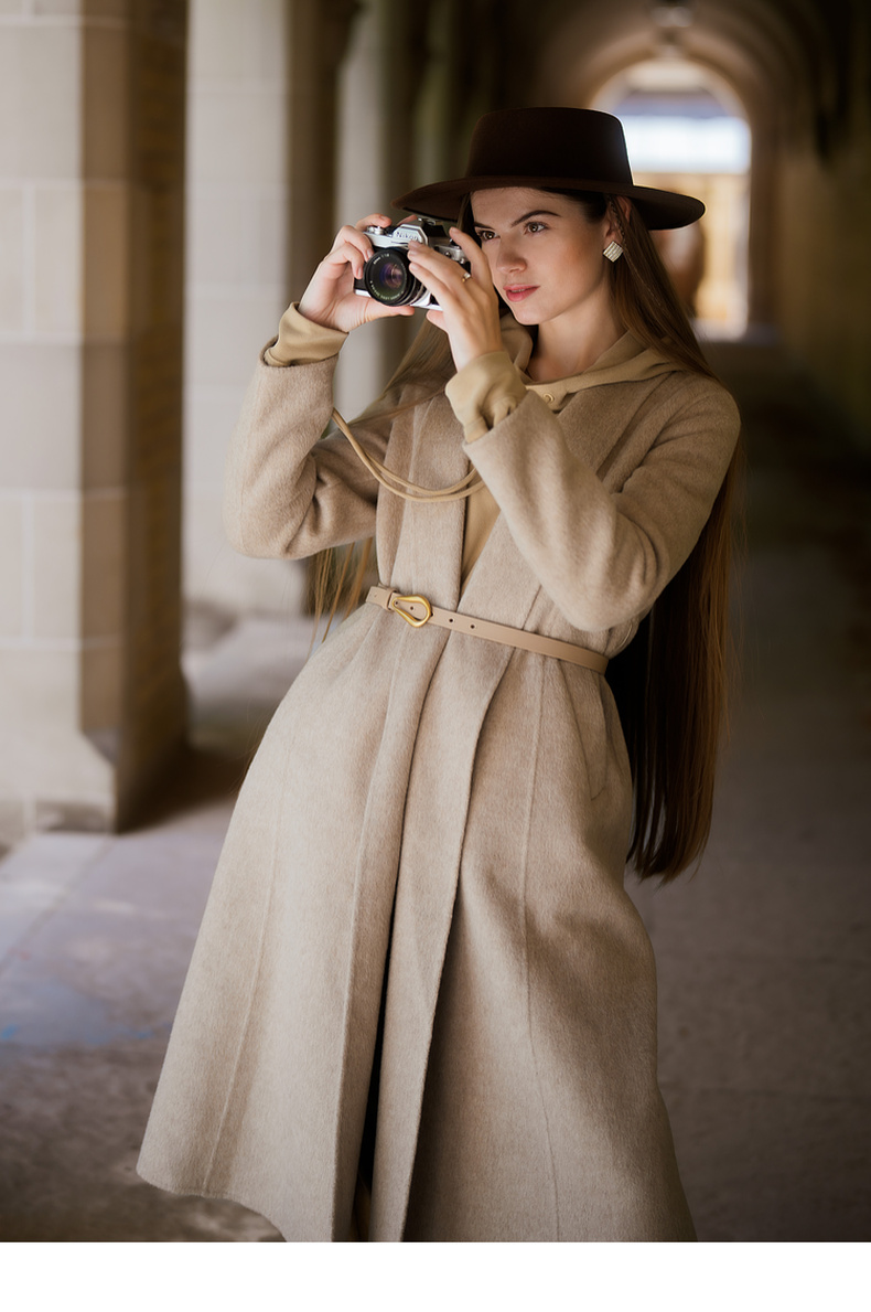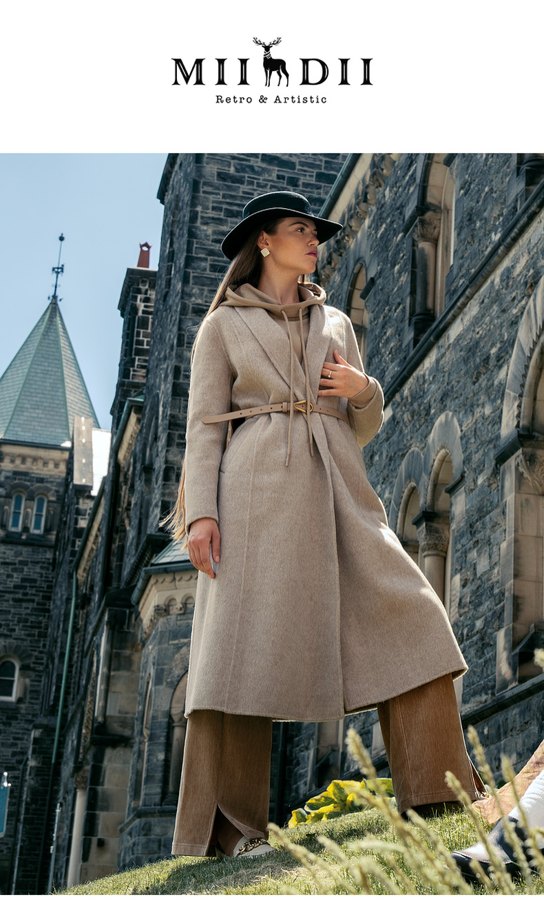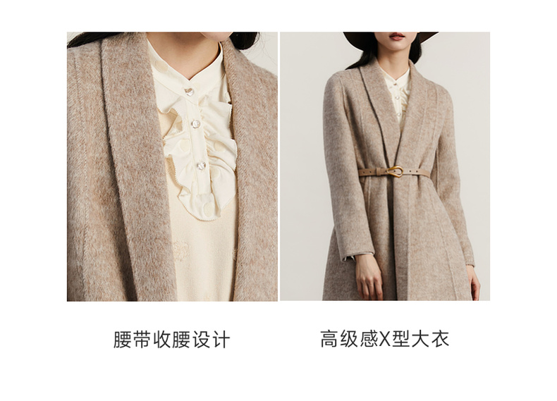 谜底羊毛呢大衣女2023冬新品极简风气质翻驳领长款呢子234GD1509