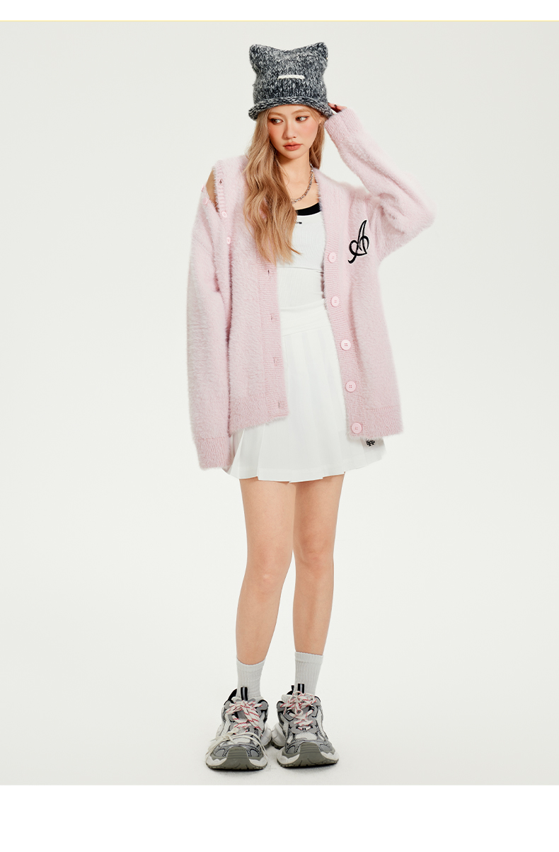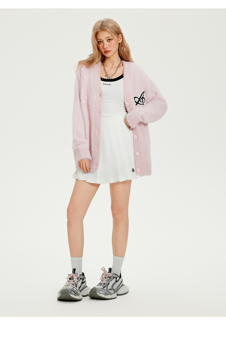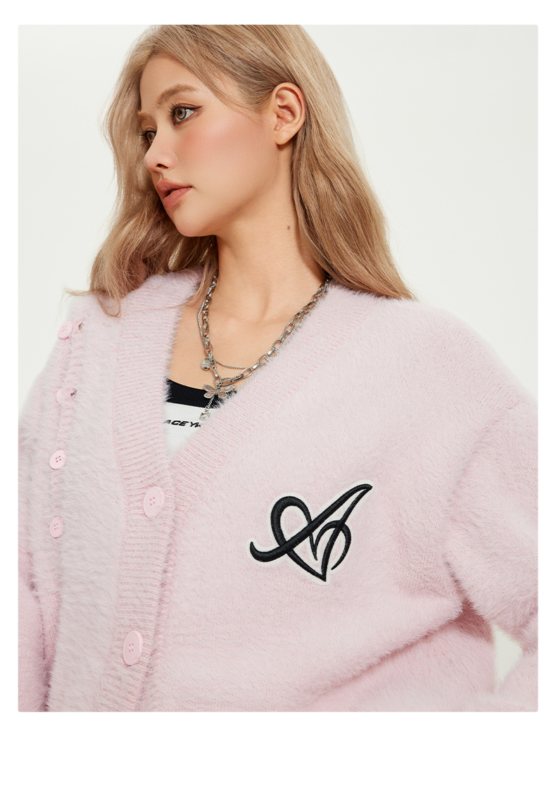 YKYB新款舒适柔软柔刺绣显白甜酷仿貂毛毛衣针织衫