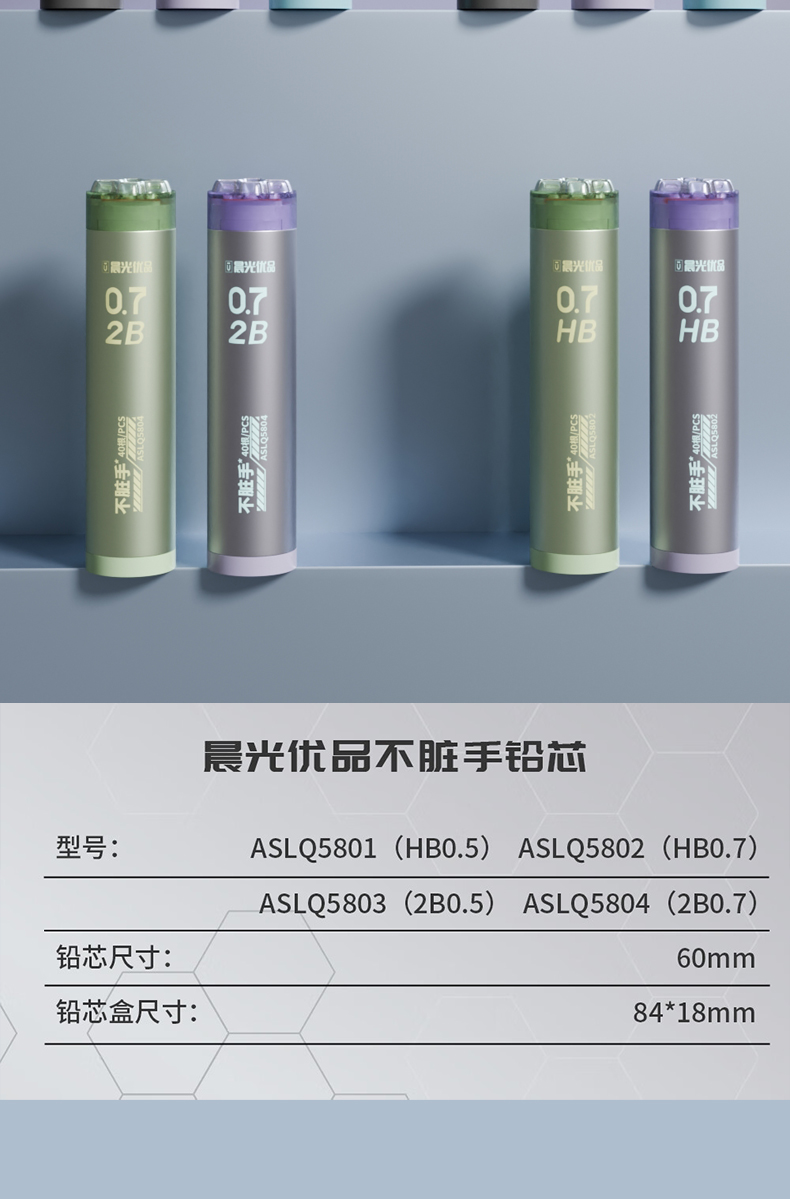 晨光优品不脏手铅芯自动铅笔芯0.5笔芯2b铅芯替芯HB不易断0.7铅笔芯(规格自选)