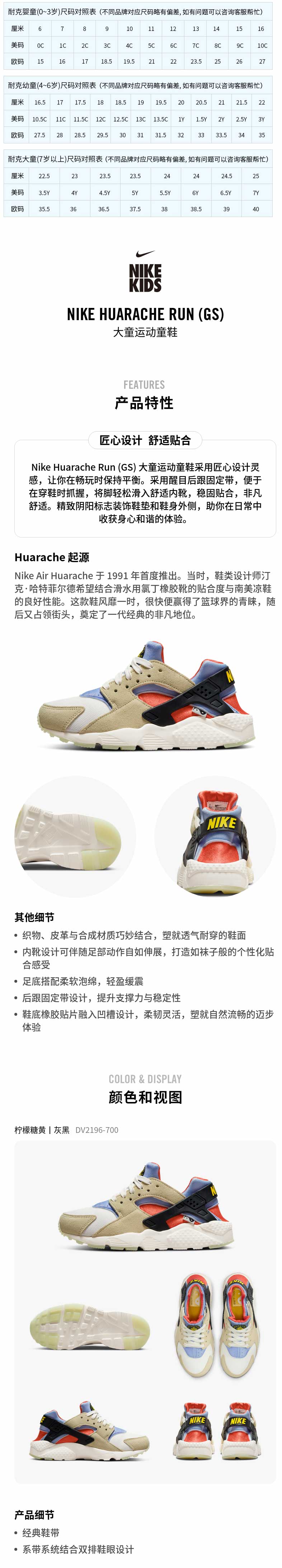 小耐克HUARACHE RUN女子GS大童休闲运动鞋DV2196-700