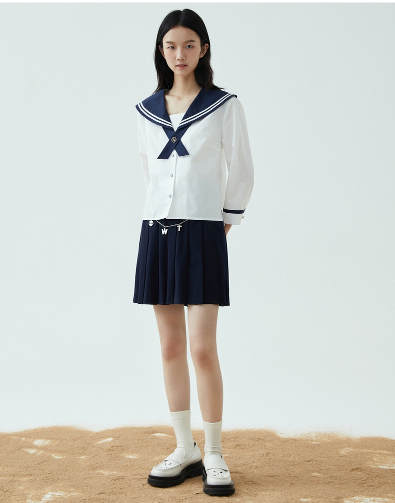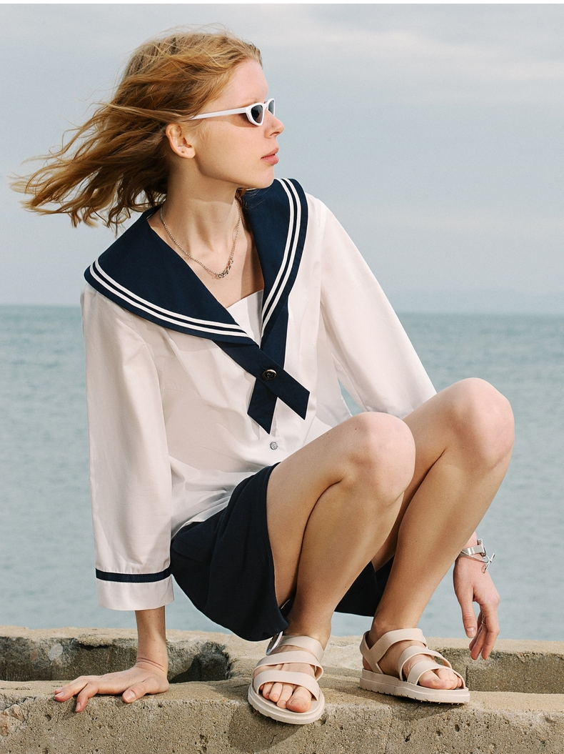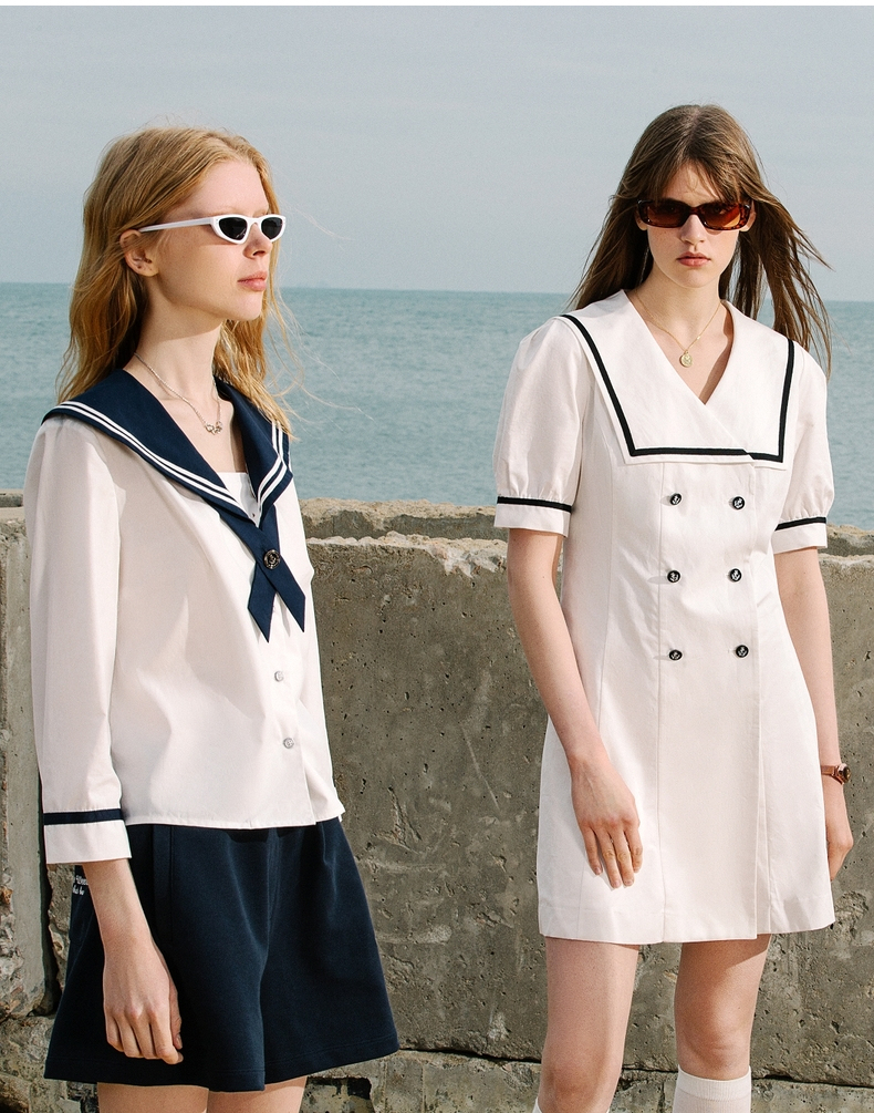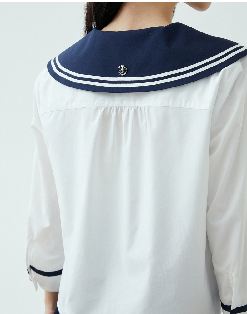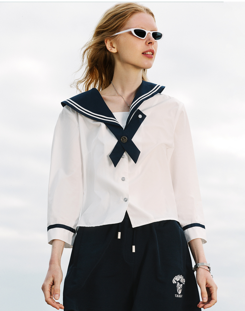 TeenieWeenie小熊2022夏季海军领设计感小众白衬衫女TTYA222403P