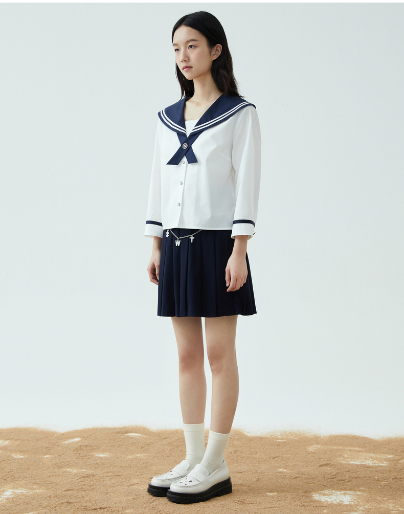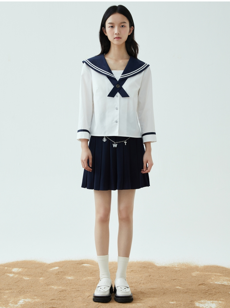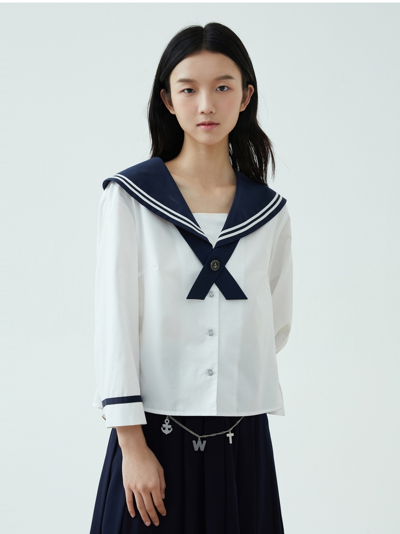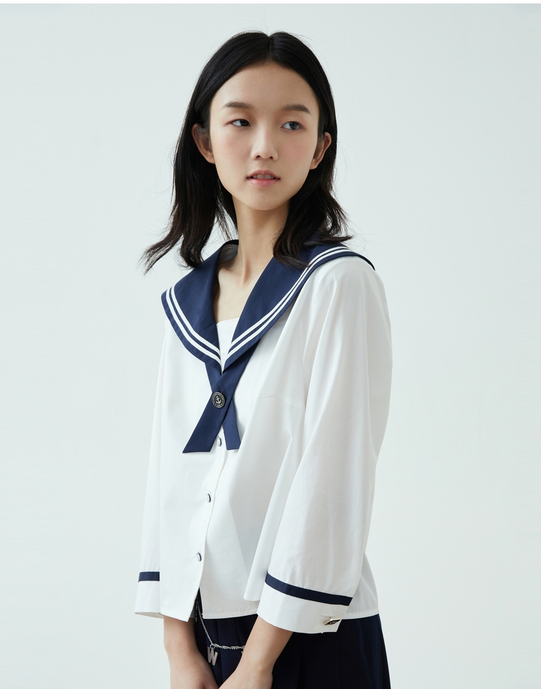 TeenieWeenie小熊2022夏季海军领设计感小众白衬衫女TTYA222403P