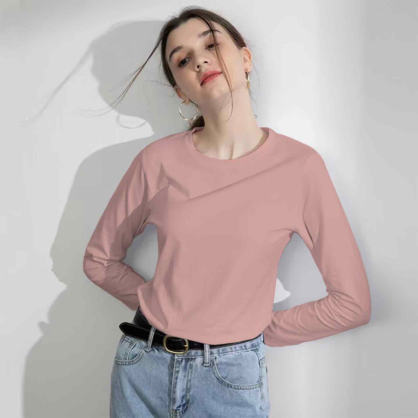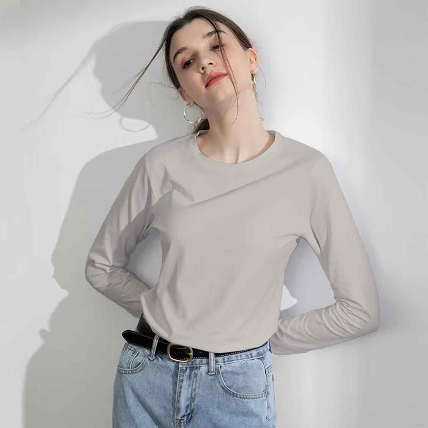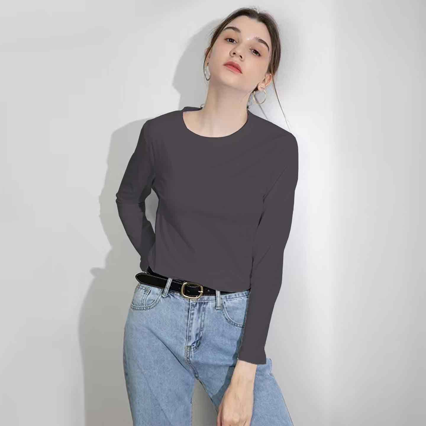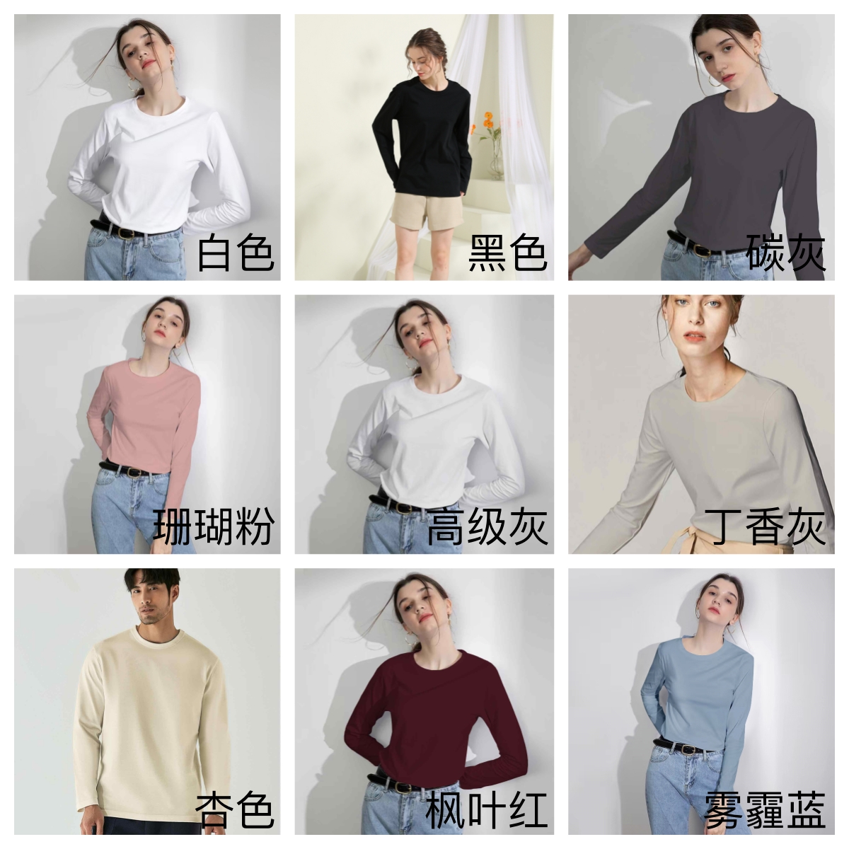 (三件)长袖纯色纯棉男女同款T恤,9色可选【G】【龙菲精选】