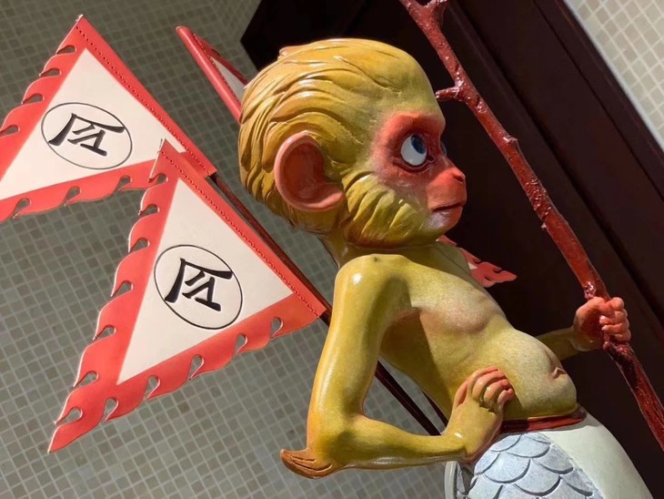 王瑞琳 郑晓淳这件作品是艺术家悟空作品的一部分,悟空系列主要借用猴王形象来探讨东方的英雄主义和平衡之道。 作品中一只花果山上的小猴,灵感来自艺术家夫妇的孩子,作为父母把对孩子的寄托,用这种形式具象的表达了出来:不求齐天称王,只愿快乐成长,在人生道路上常怀勇气和梦想。
