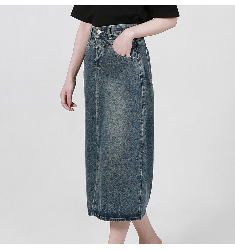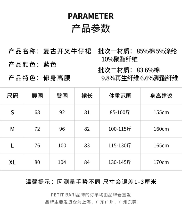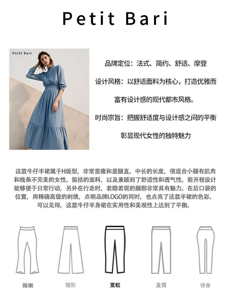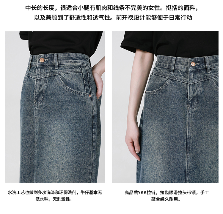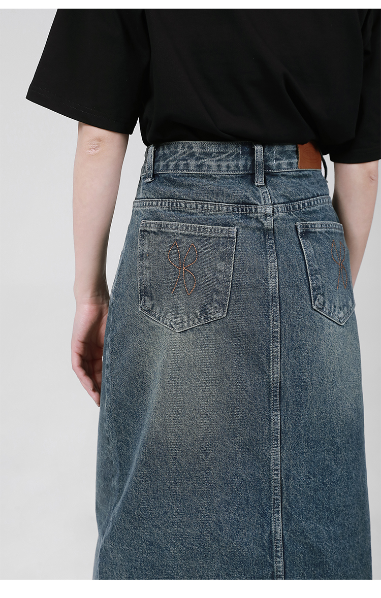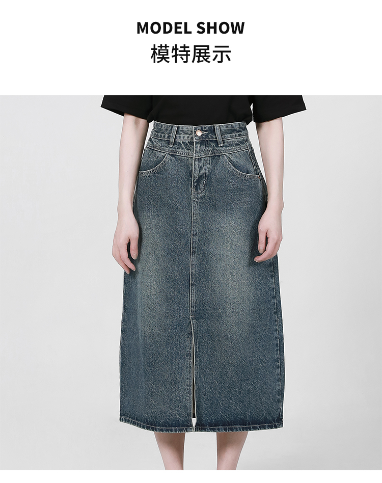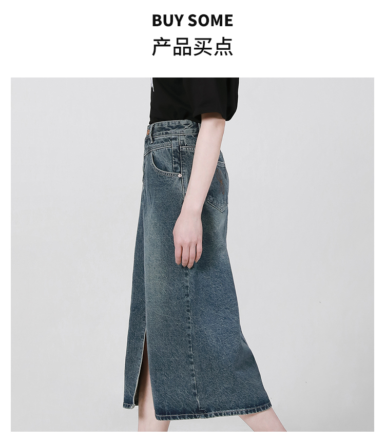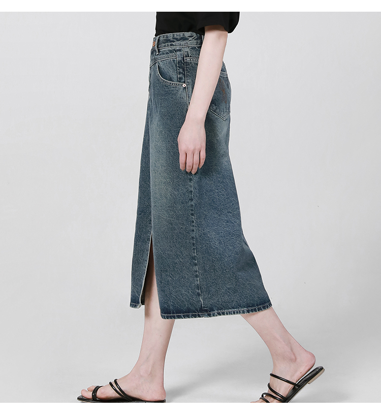 【2件9折】【Petit Bari】复古开叉牛仔裙