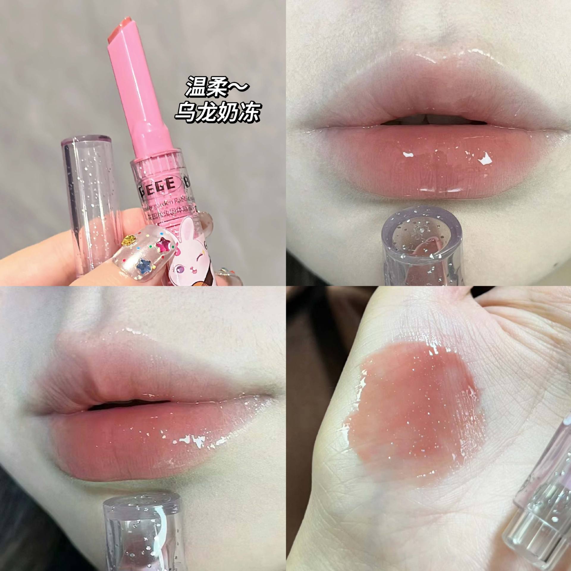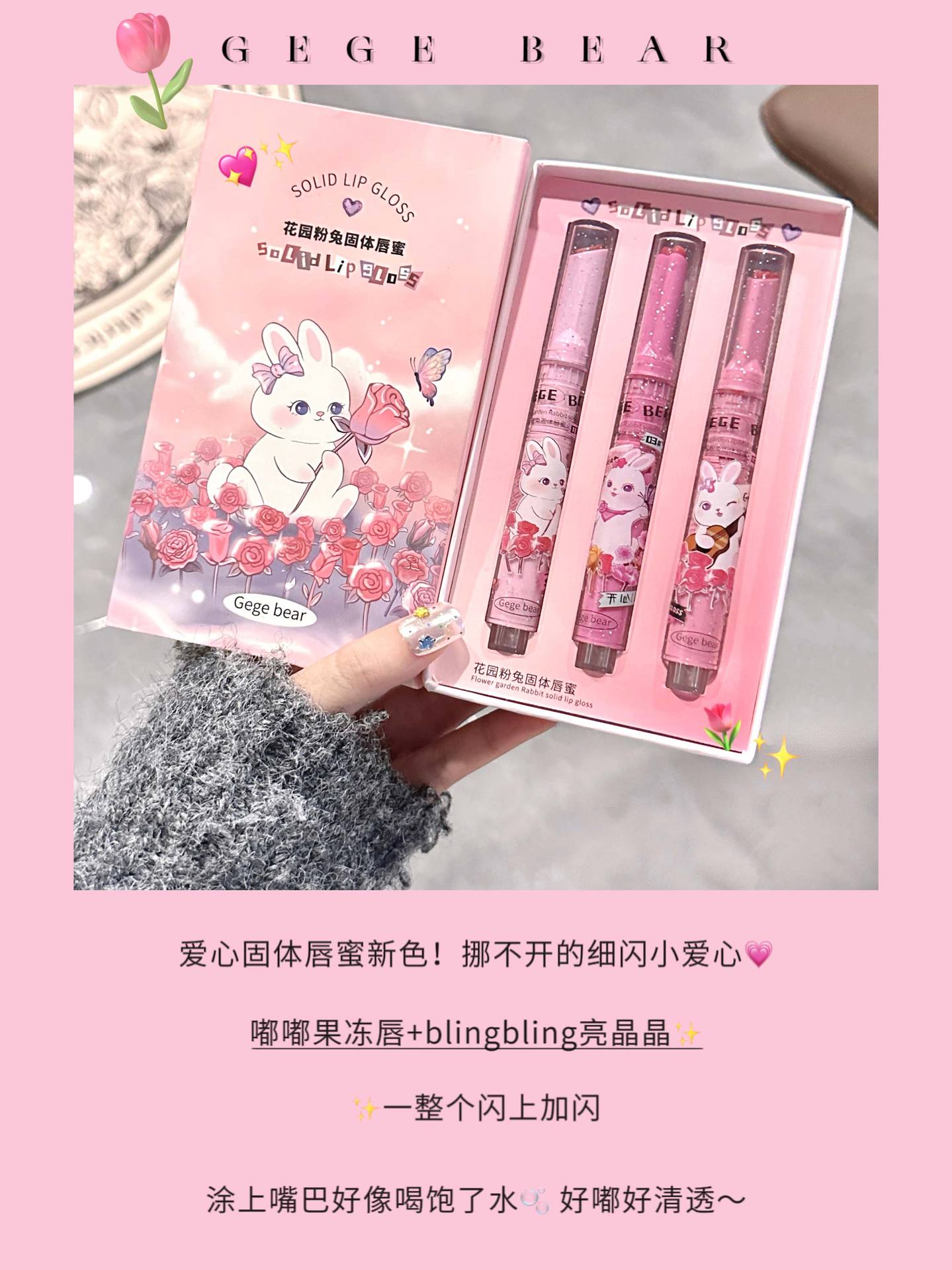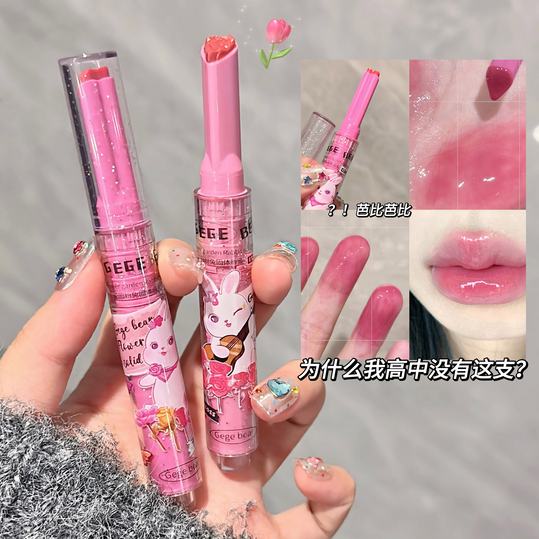 「9.9元包邮!数款可选」Gege bear戈戈小熊花园粉兔固体唇蜜 滋润镜面水光爱心果冻唇釉美妆