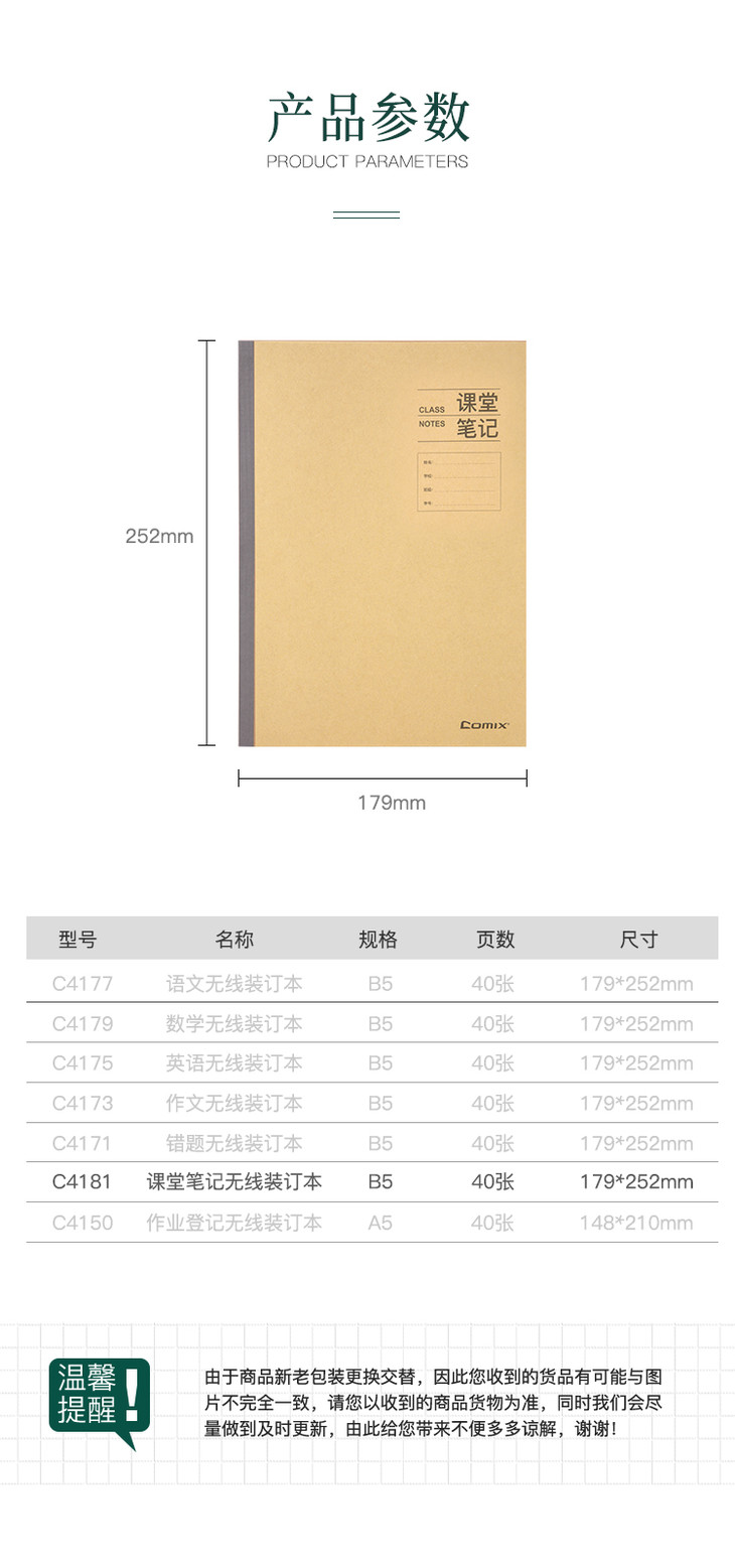齐心 C4181 牛皮纸系列 课堂笔记无线装订本 B5 40张