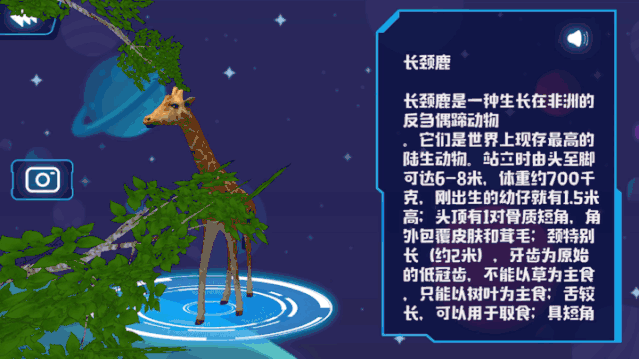 通过右侧的知识点,孩子能学到不少冷知识:原来,长颈鹿是因为牙齿的原因,吃不了草,只能啃树叶。