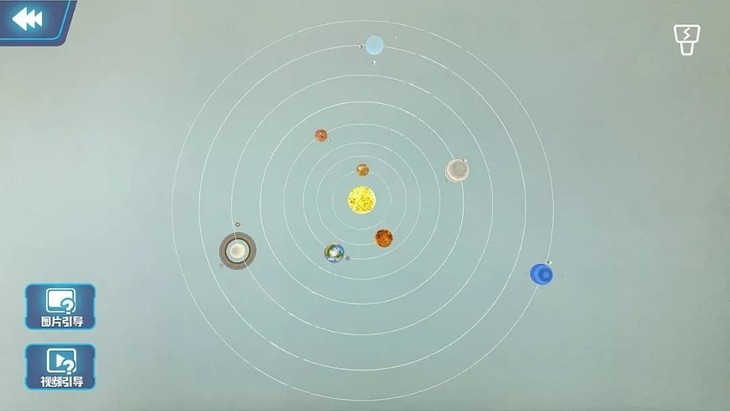 而AR技术实现了太阳系运行轨道的清晰投影,孩子轻易就能观察到,离太阳从近到远依次是水星、金星、地球、火星、木星、土星、天王星和海王星。