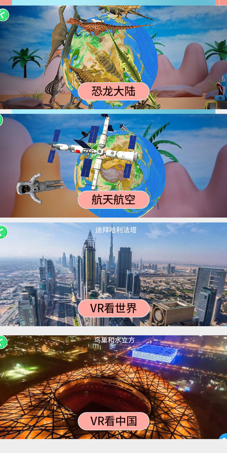 不仅能够展示宇宙运行、天气现象,还能看鸟巢等各处地标,全都活生生地展现在孩子的眼前▼