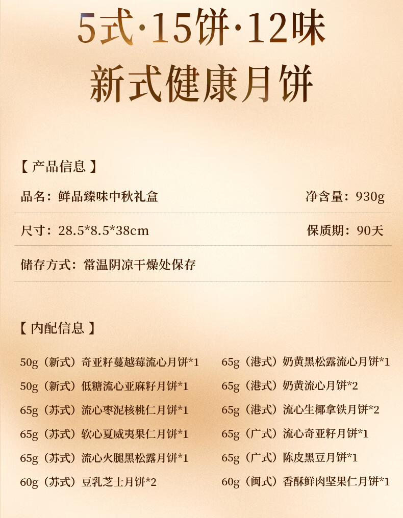 鲜品屋中秋节月饼礼盒高档新式健康流心月饼送礼蛋黄莲蓉企业团购礼品 鲜品臻味930g