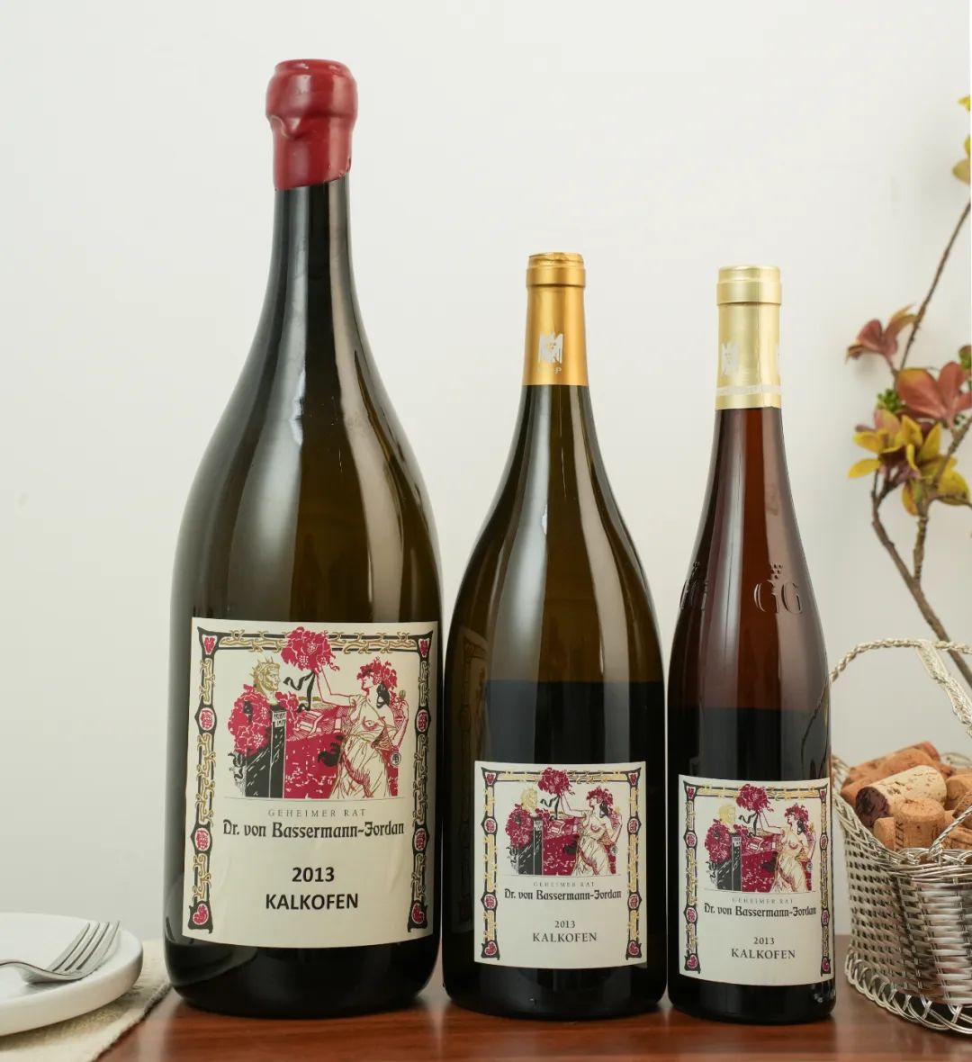 今天推荐巴塞曼乔丹酒庄石灰窑特级园雷司令干白(Bassermann Jordan Kalkofen Riesling GG),并且是距今11年的老年份、从750ml到1500ml到3000ml的不同规格,一次性给大家全部集齐!