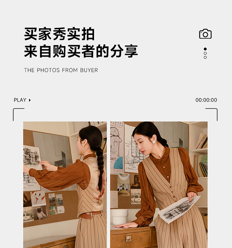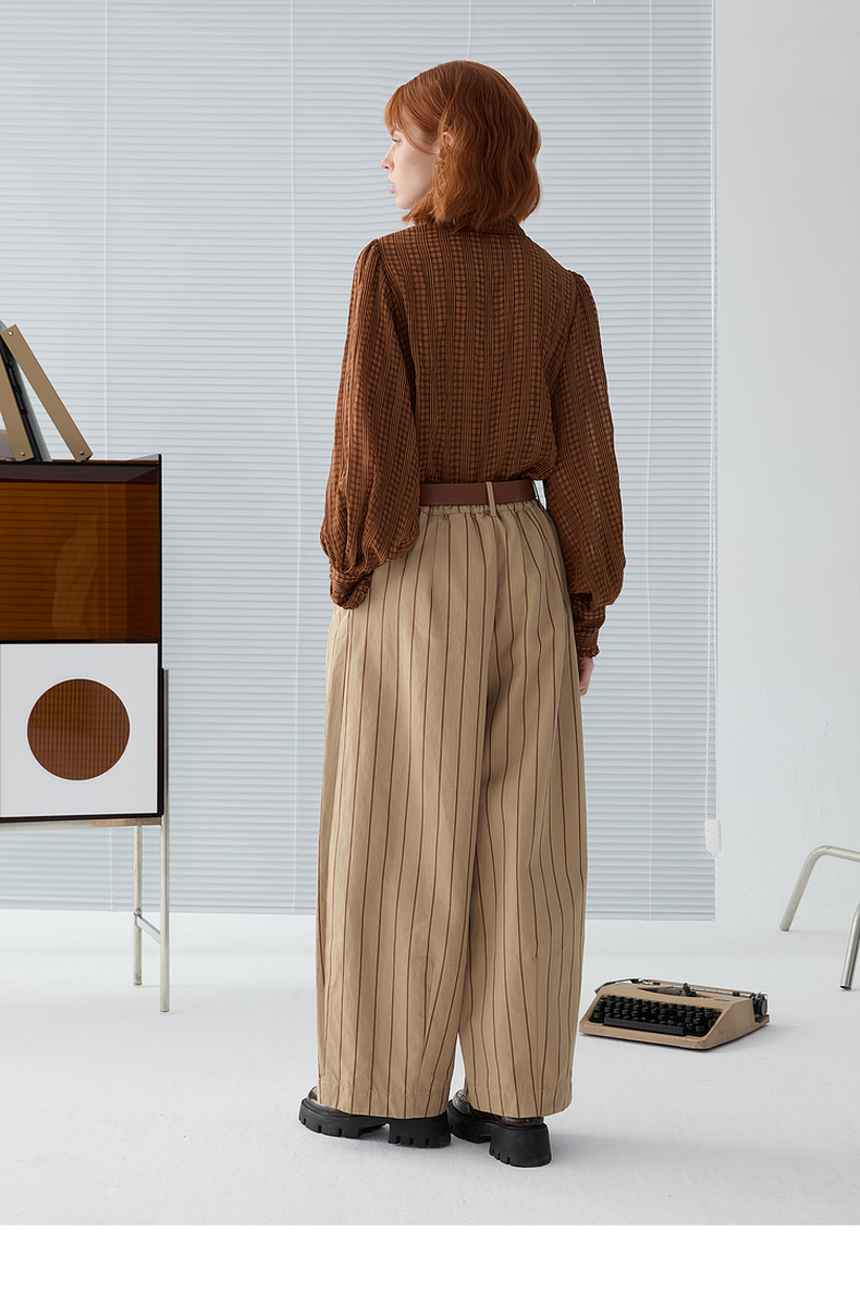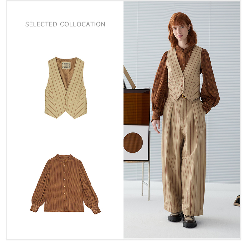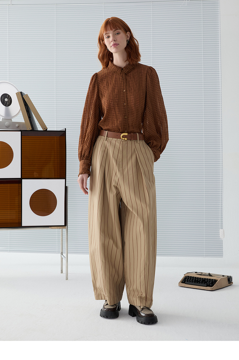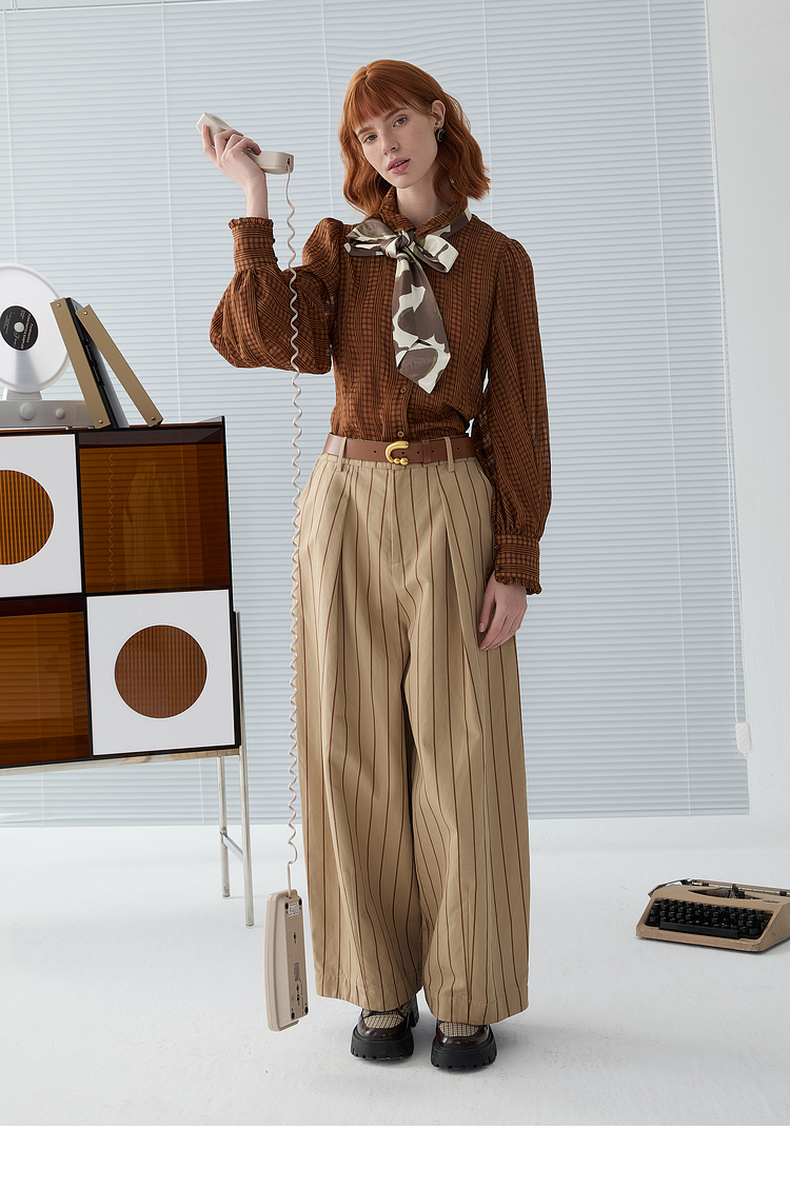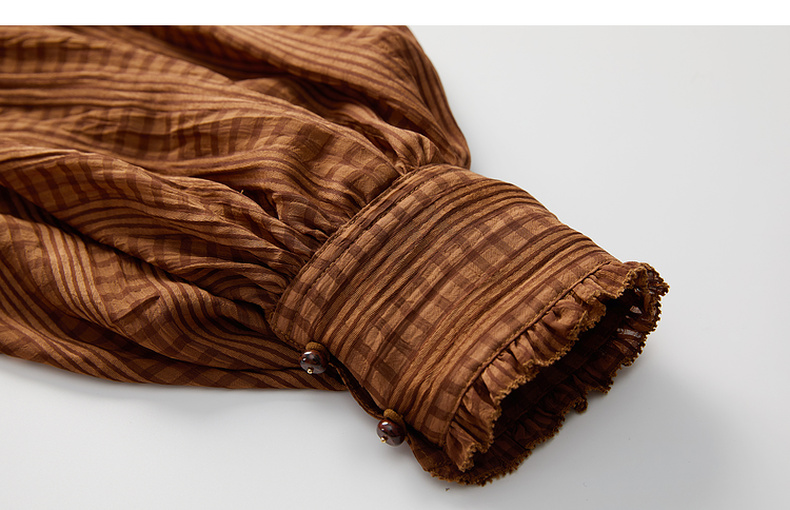 谜底格纹衬衫长袖女2025春季新品复古风微皱肌理感衬衣251MC0109