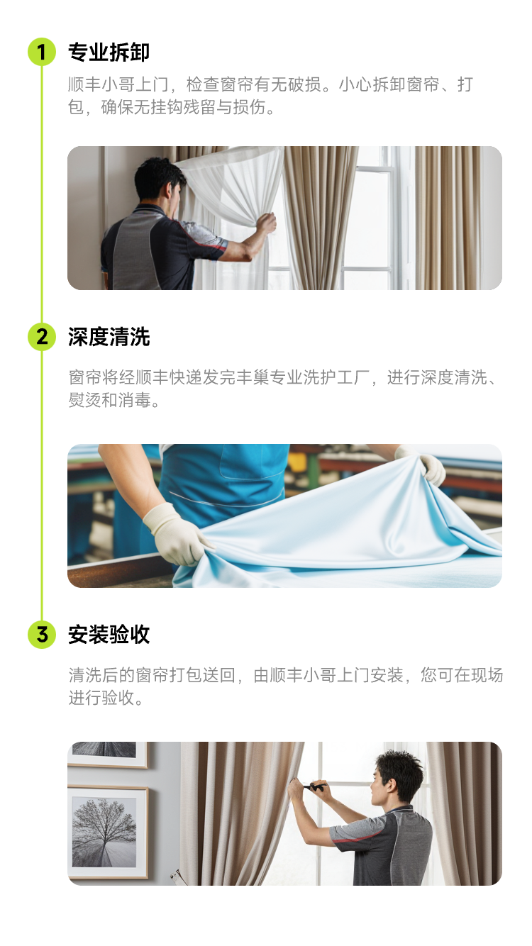 【臻选家政-家居清洗】窗帘清洗(拆洗)——丰巢洗护