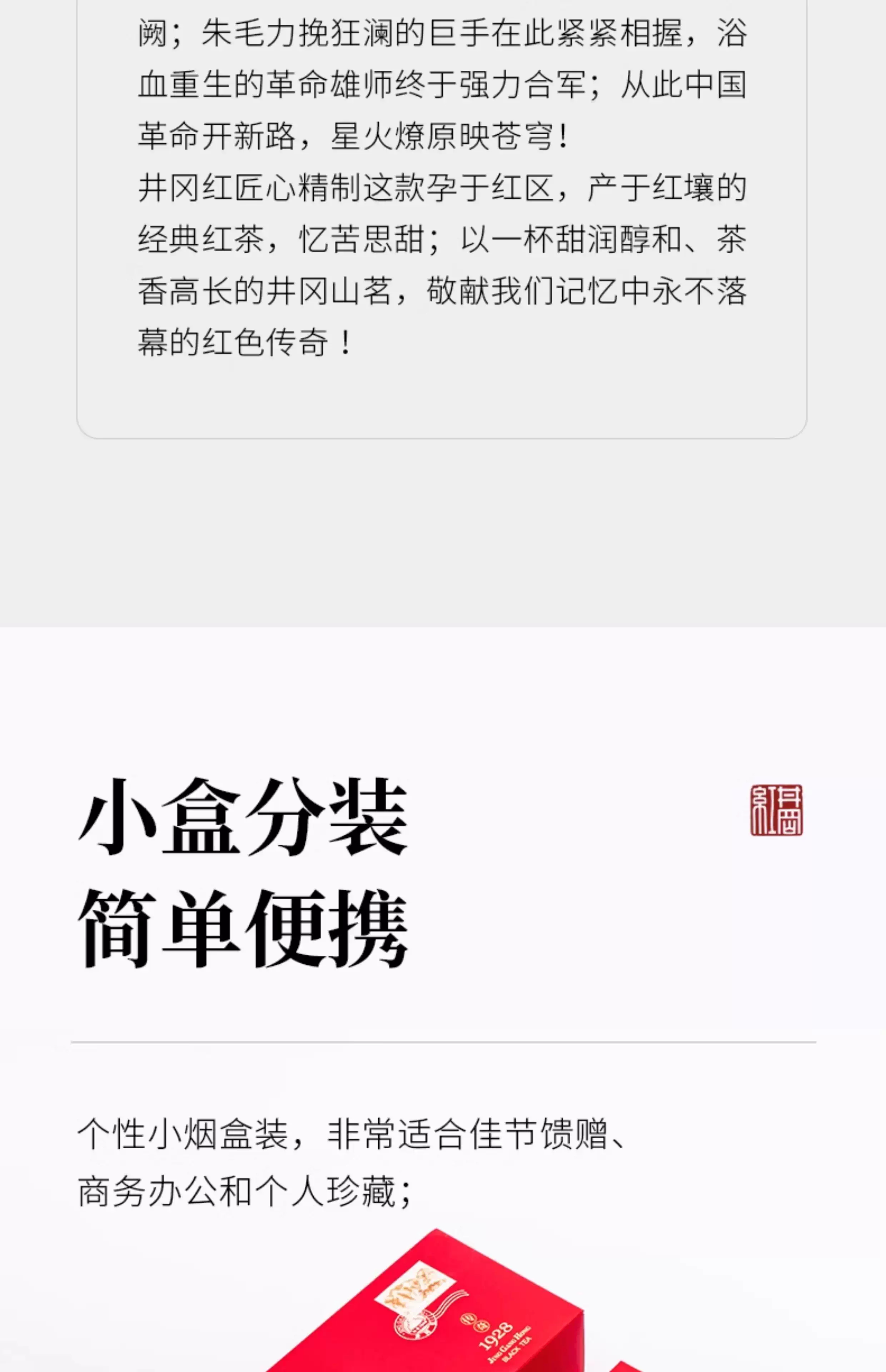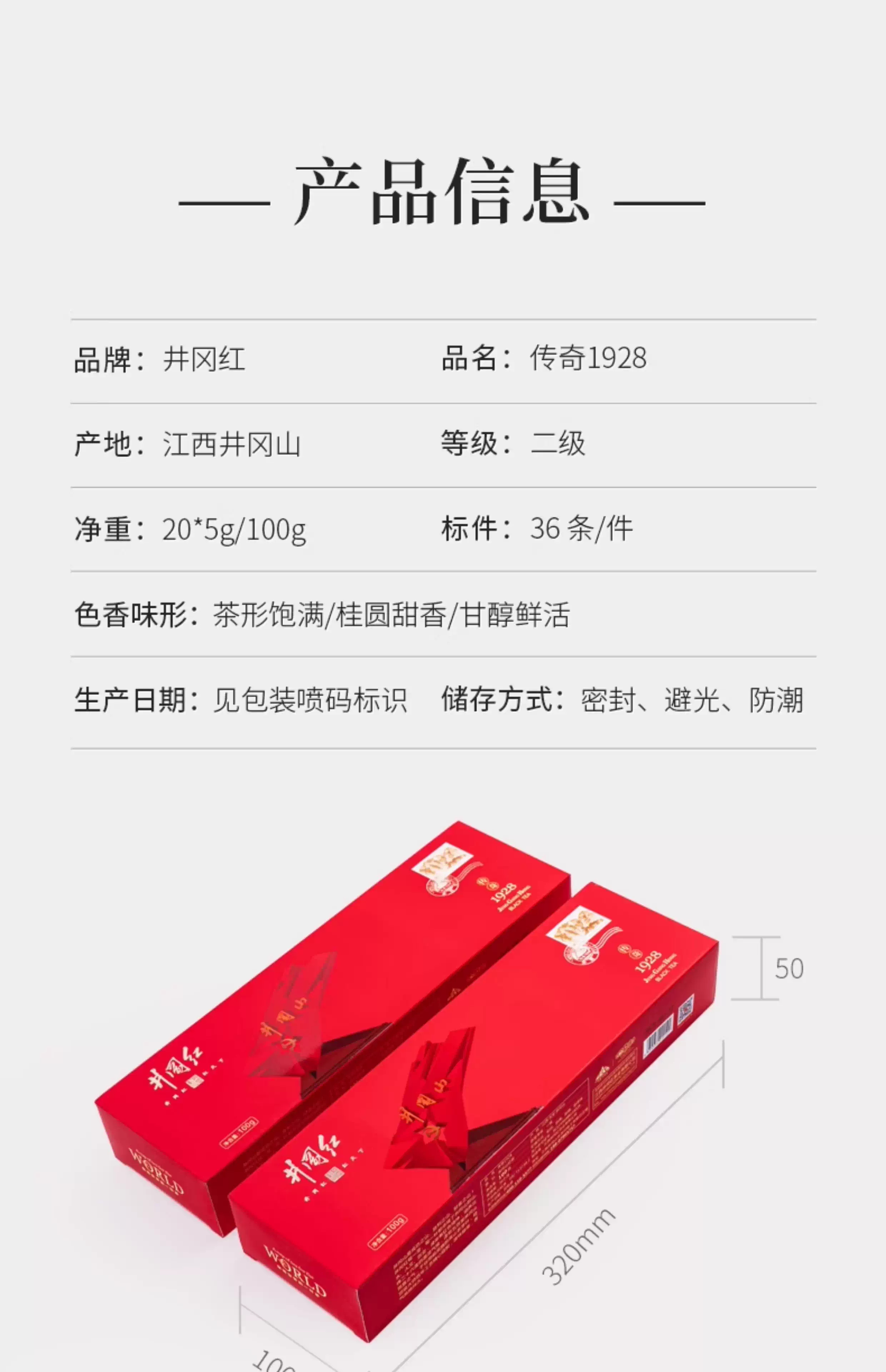 井冈红传奇1928礼品茶红茶花果香一级100克条