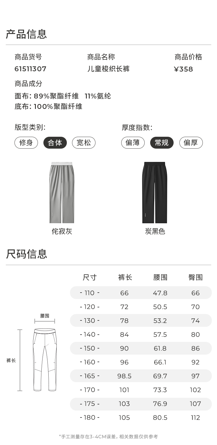【大J专属】moodytiger儿童裤子26春男女童运动校园户外直筒长裤61511307