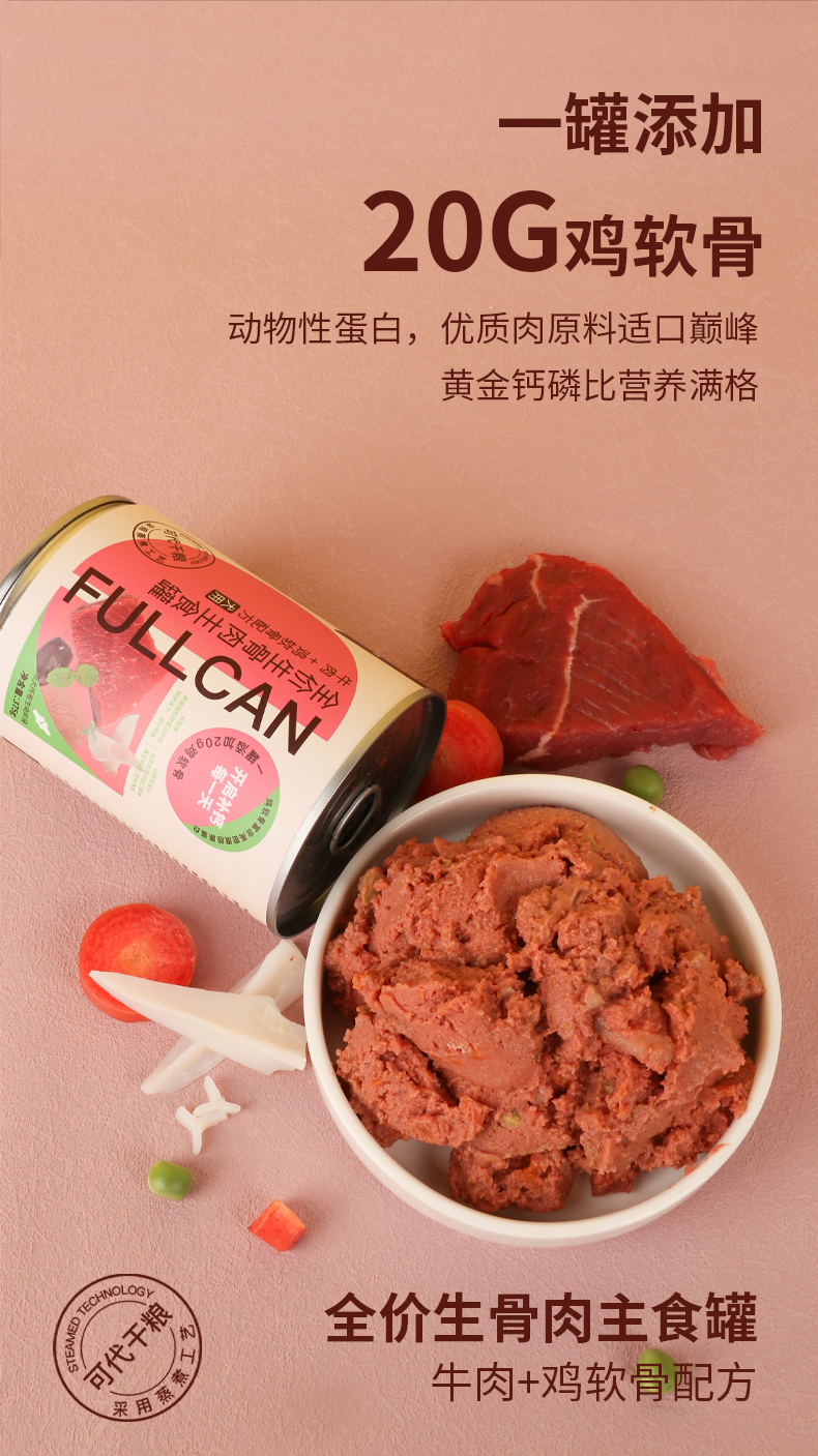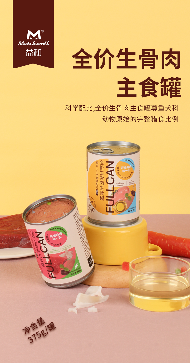 【优质主食罐】益和全价生骨肉主食狗罐头添加鸡软骨与三文鱼油375g/罐