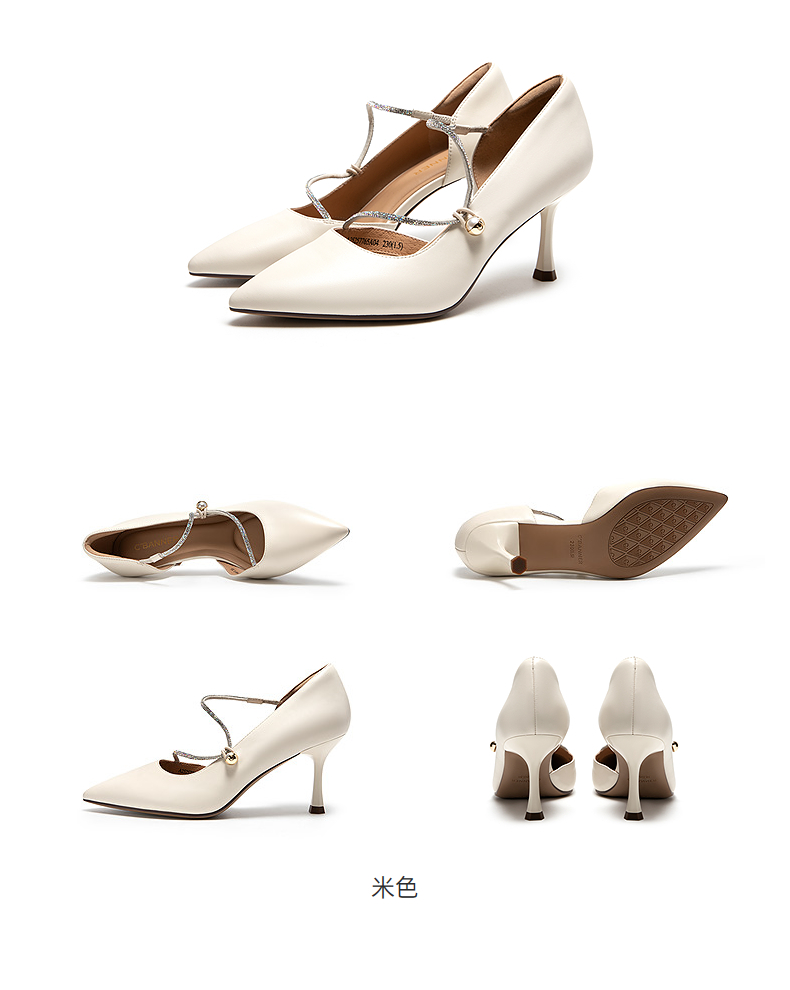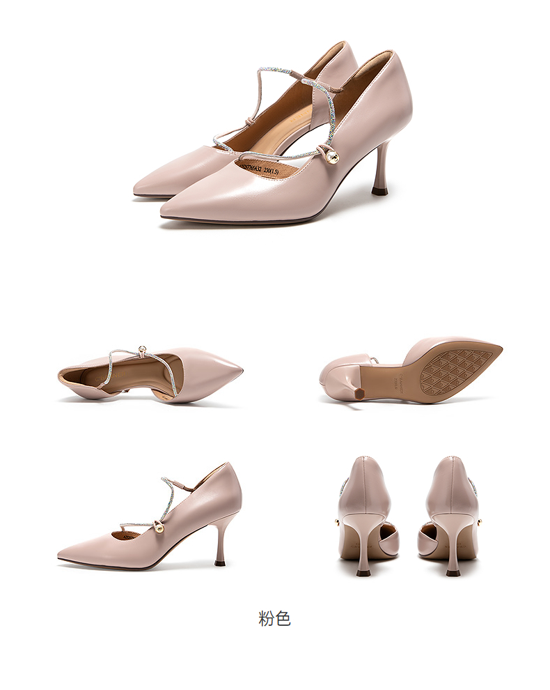 【静音系列】千百度蝴蝶兰扣式高跟鞋女通勤浅口单鞋A25106057