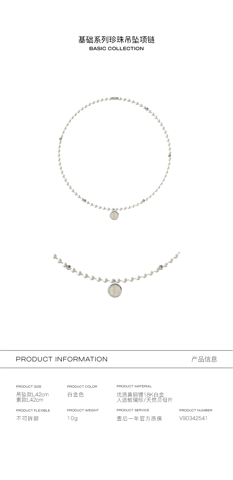 KVK人造珍珠贝母项链女小众设计感2021新款潮颈链高级感吊坠饰品