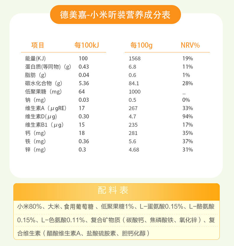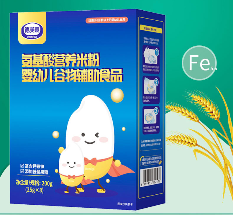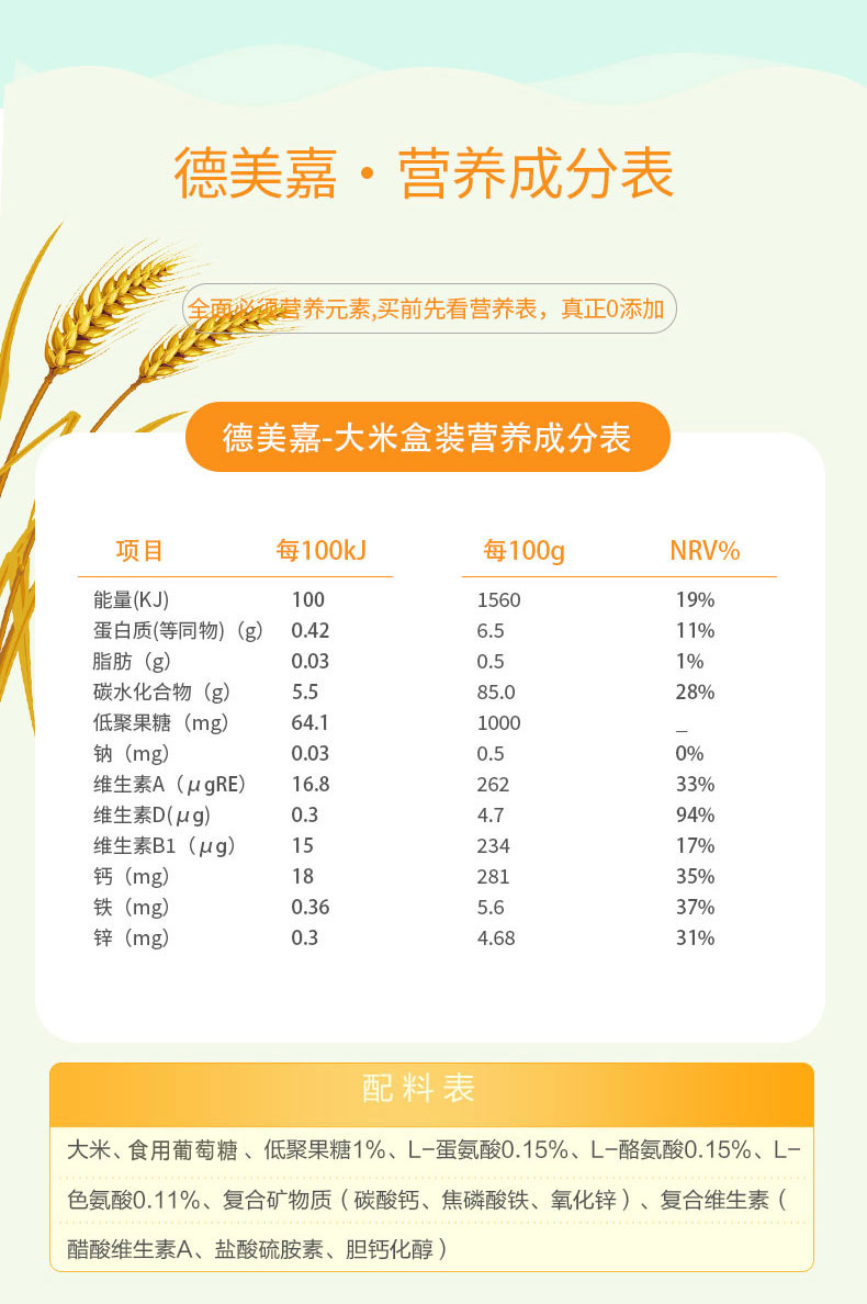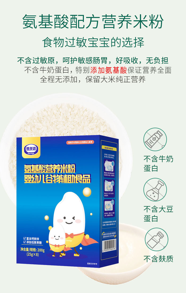 新批次202512(氨基酸大米米粉敏宝适用)德美嘉氨基酸营养大米米粉,25g/袋*8袋