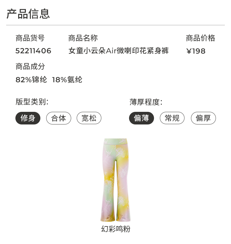 moodytiger女童小云朵Air微喇印花紧身裤62211402