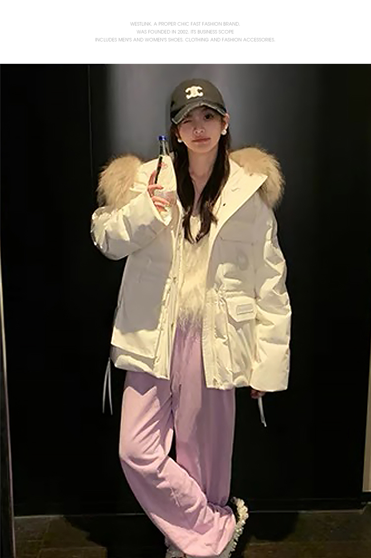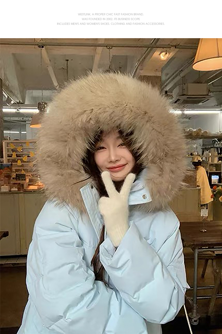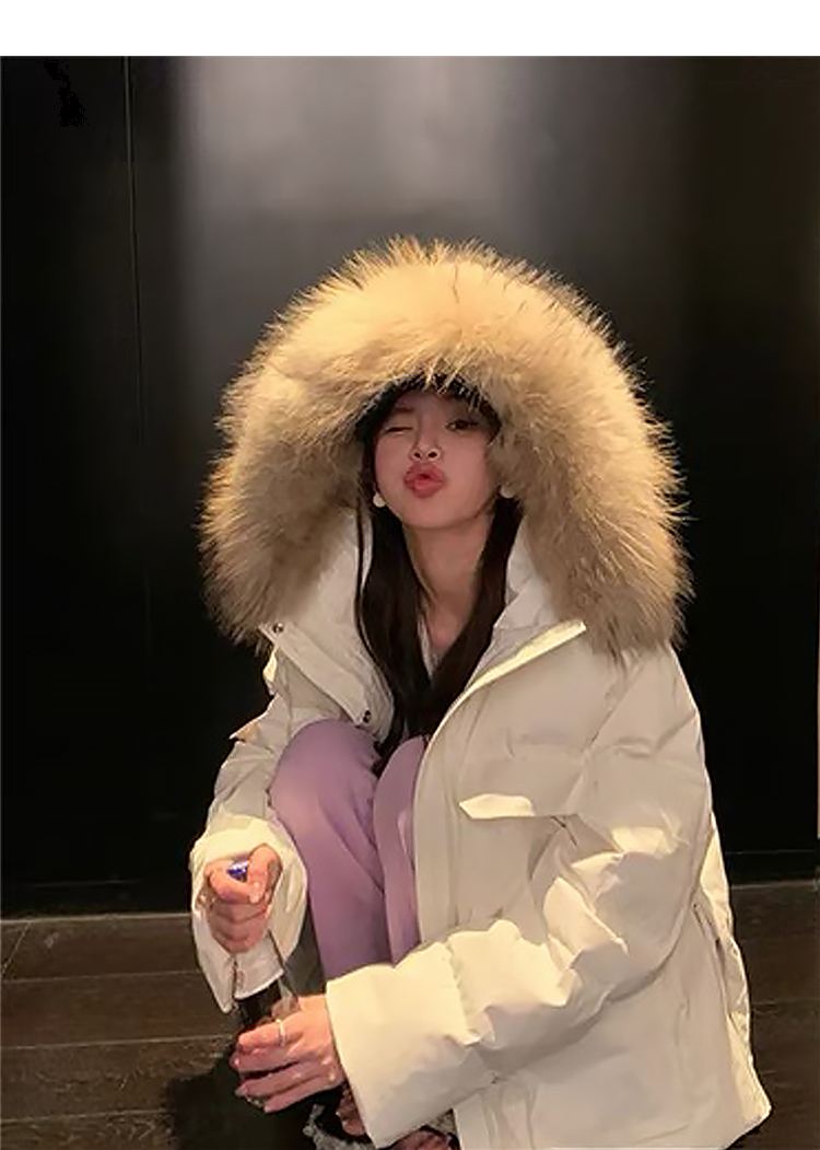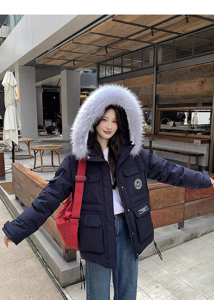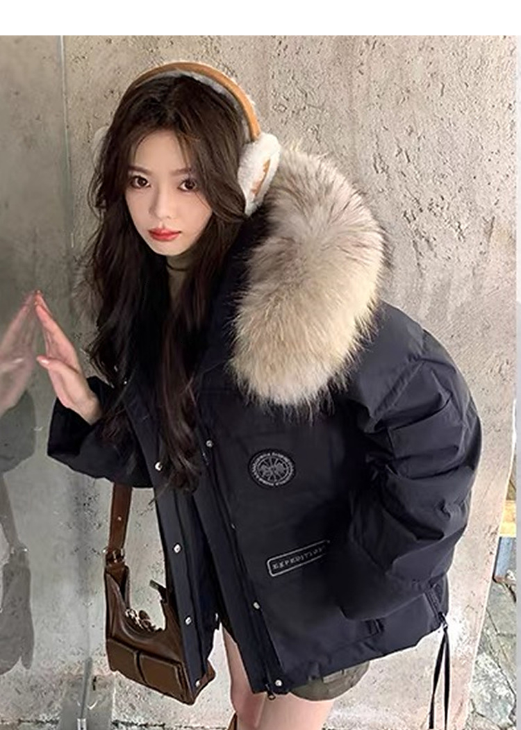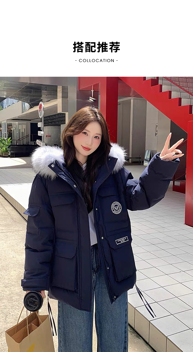 西遇韩版加厚棉服女冬季新款大毛领连帽短款工装派克服SS051747