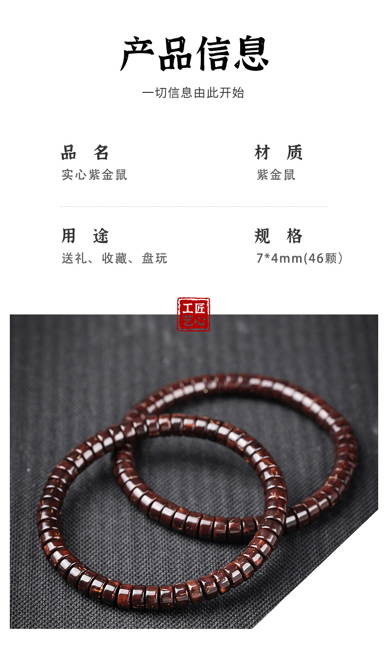 「天然选材!实心·紫金鼠」直切紫金鼠药片手串 男女绕指柔文玩紫金鼠手串时尚饰品