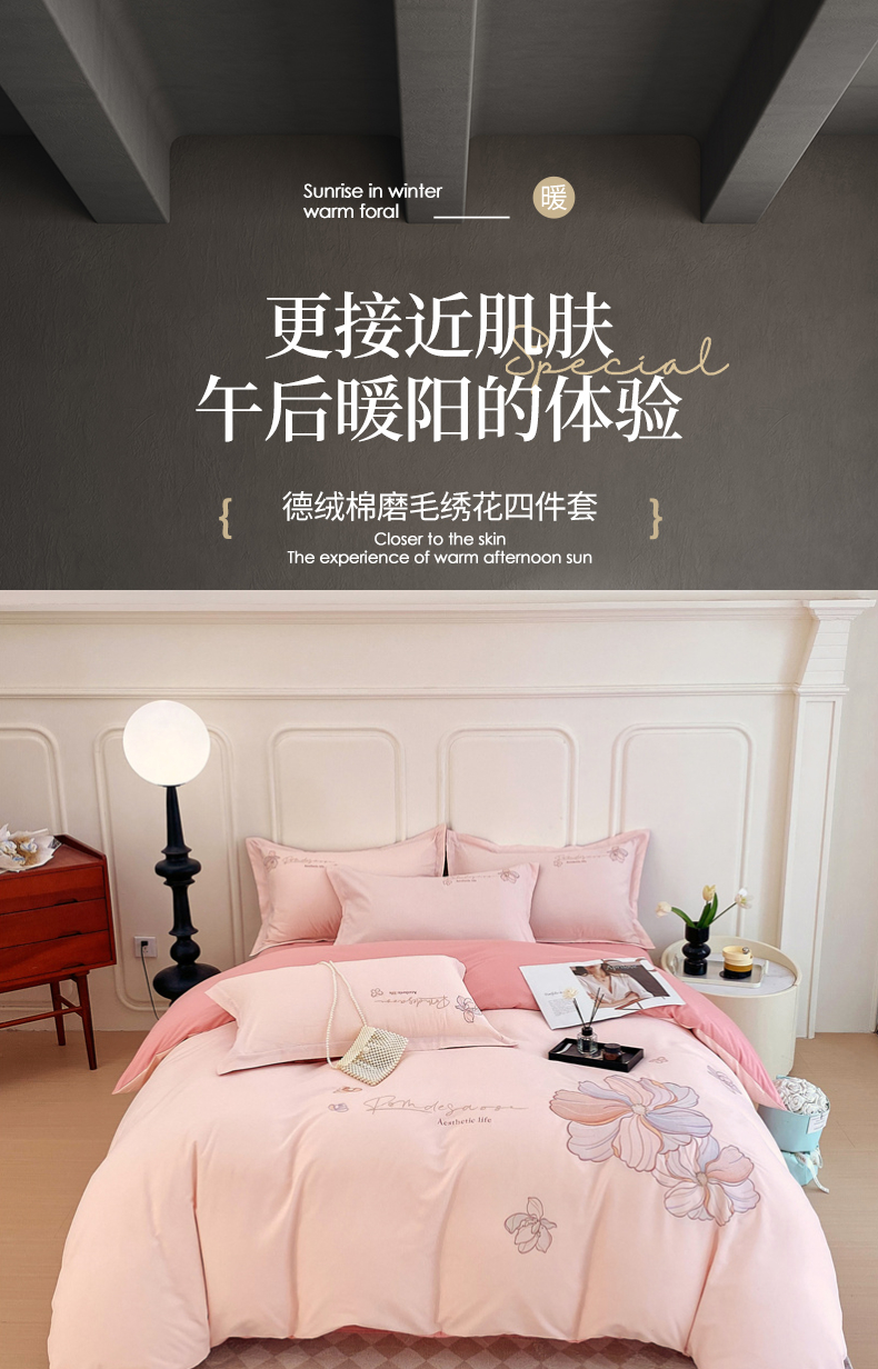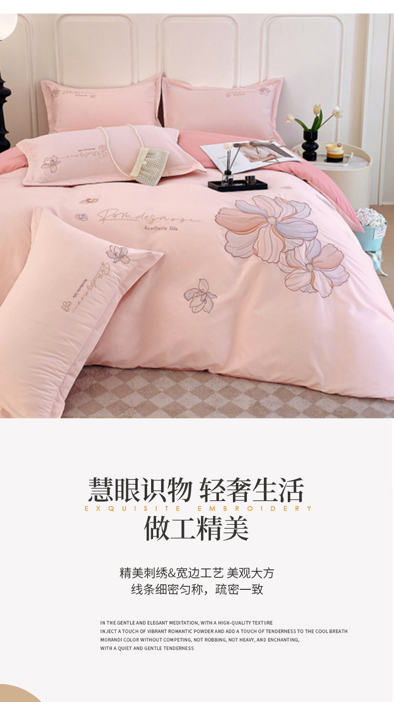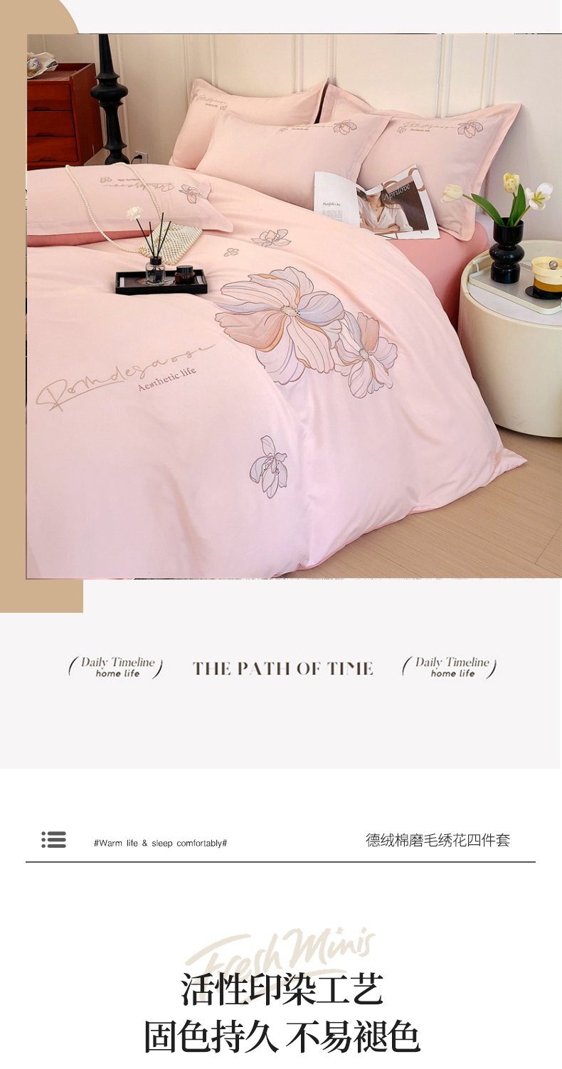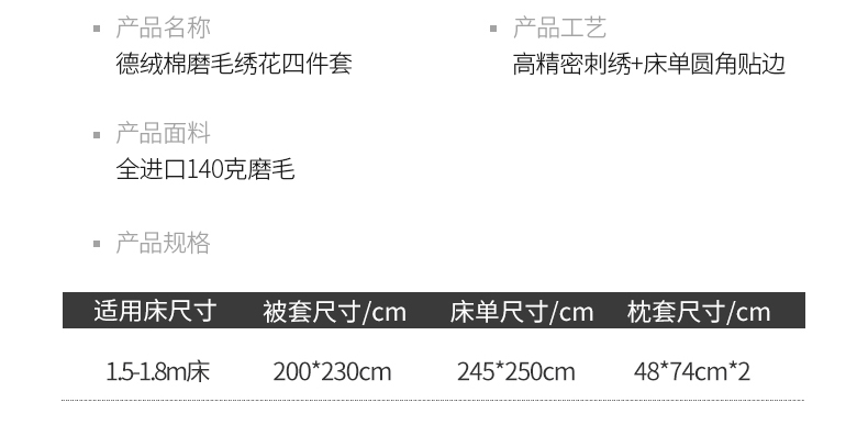 德绒棉磨毛绣花四件套 适用1.5~1.8m床