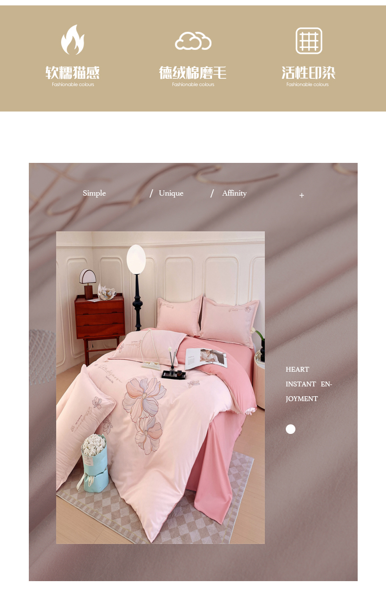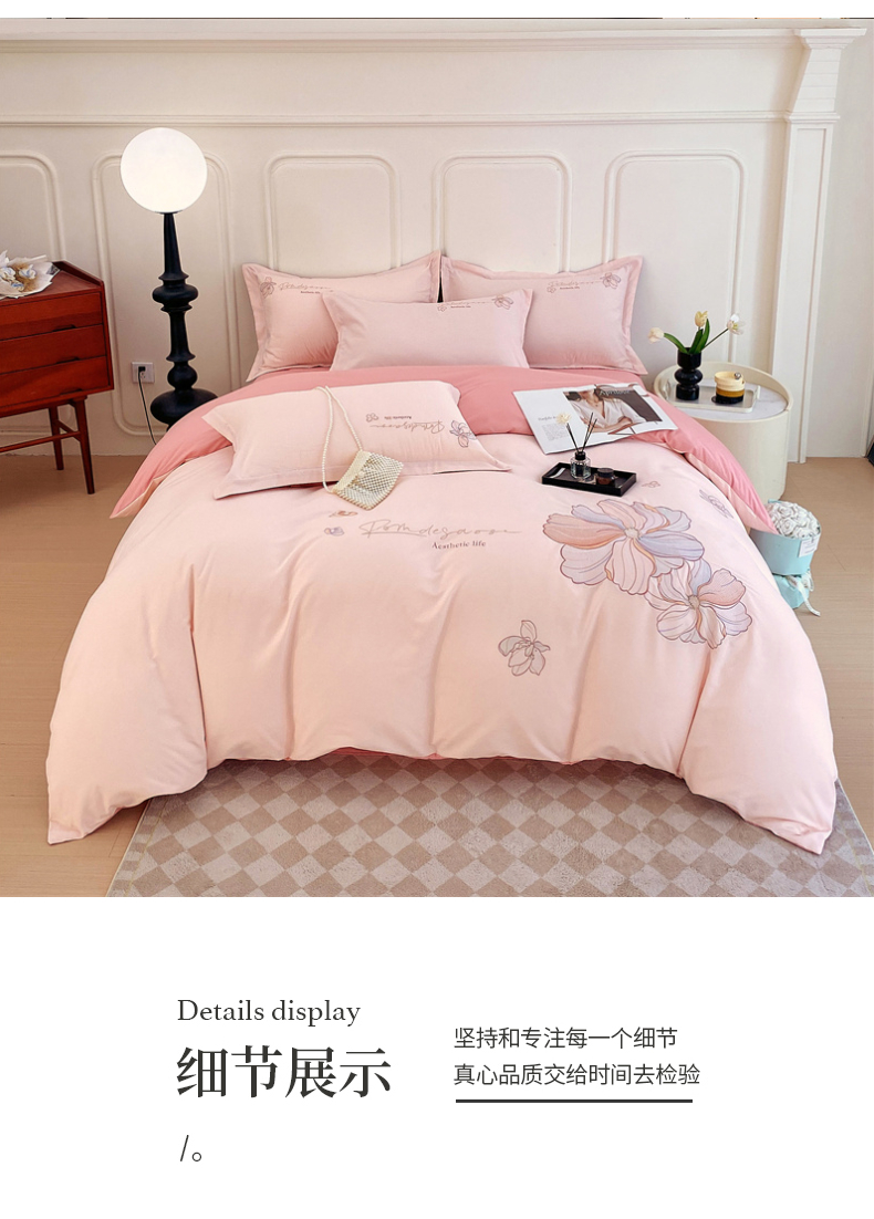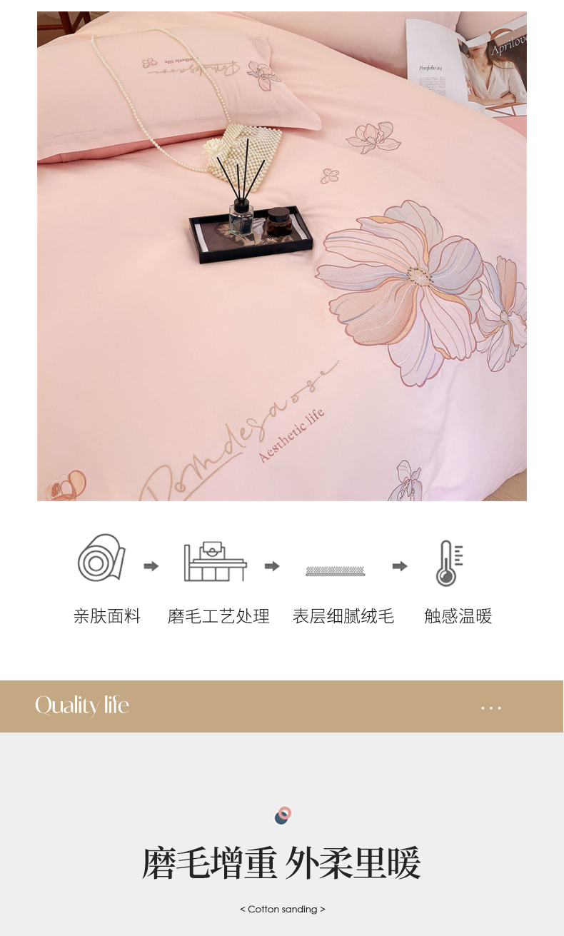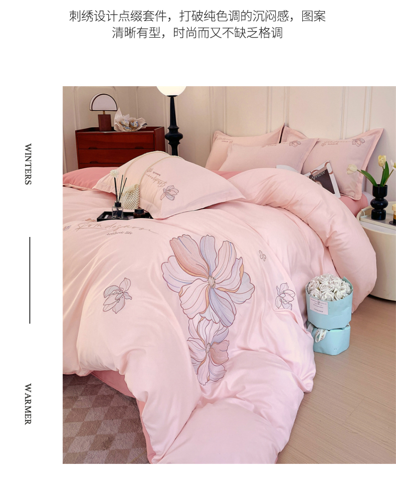 德绒棉磨毛绣花四件套 适用1.5~1.8m床