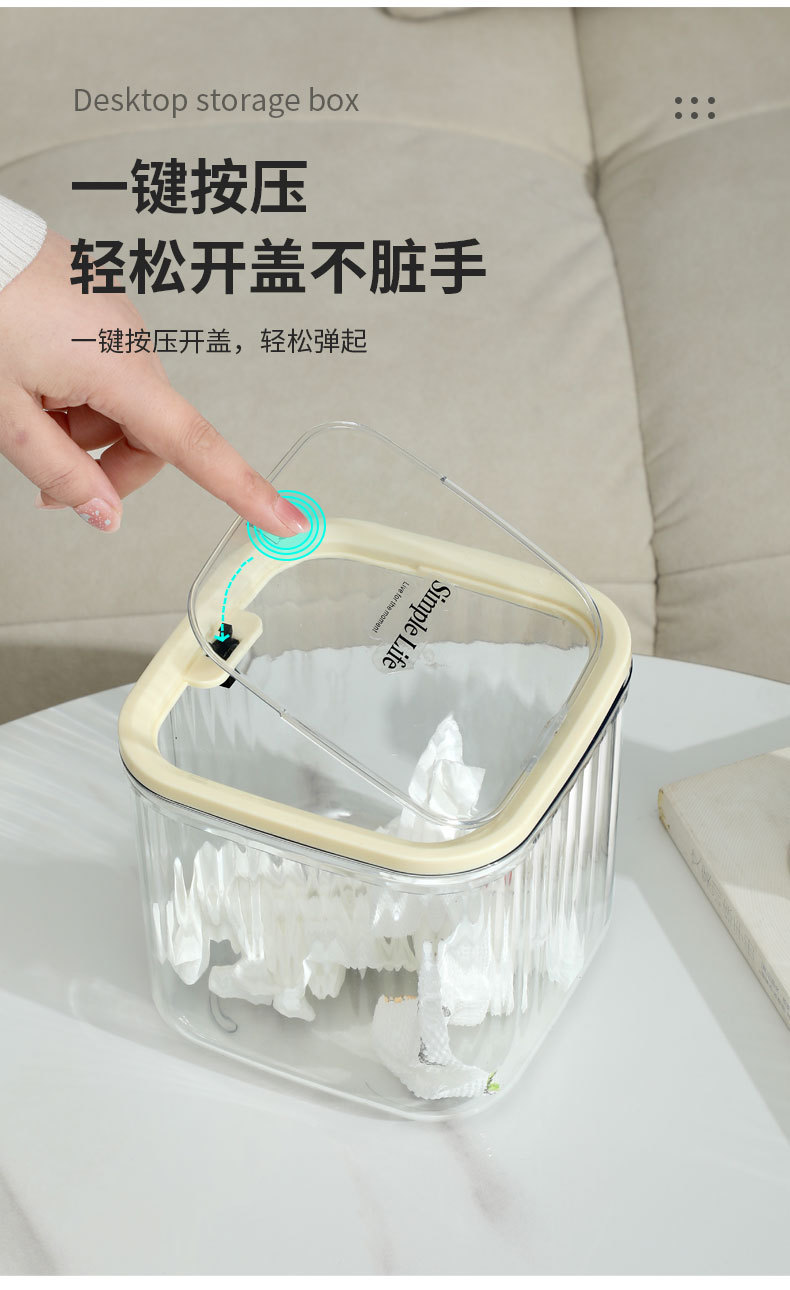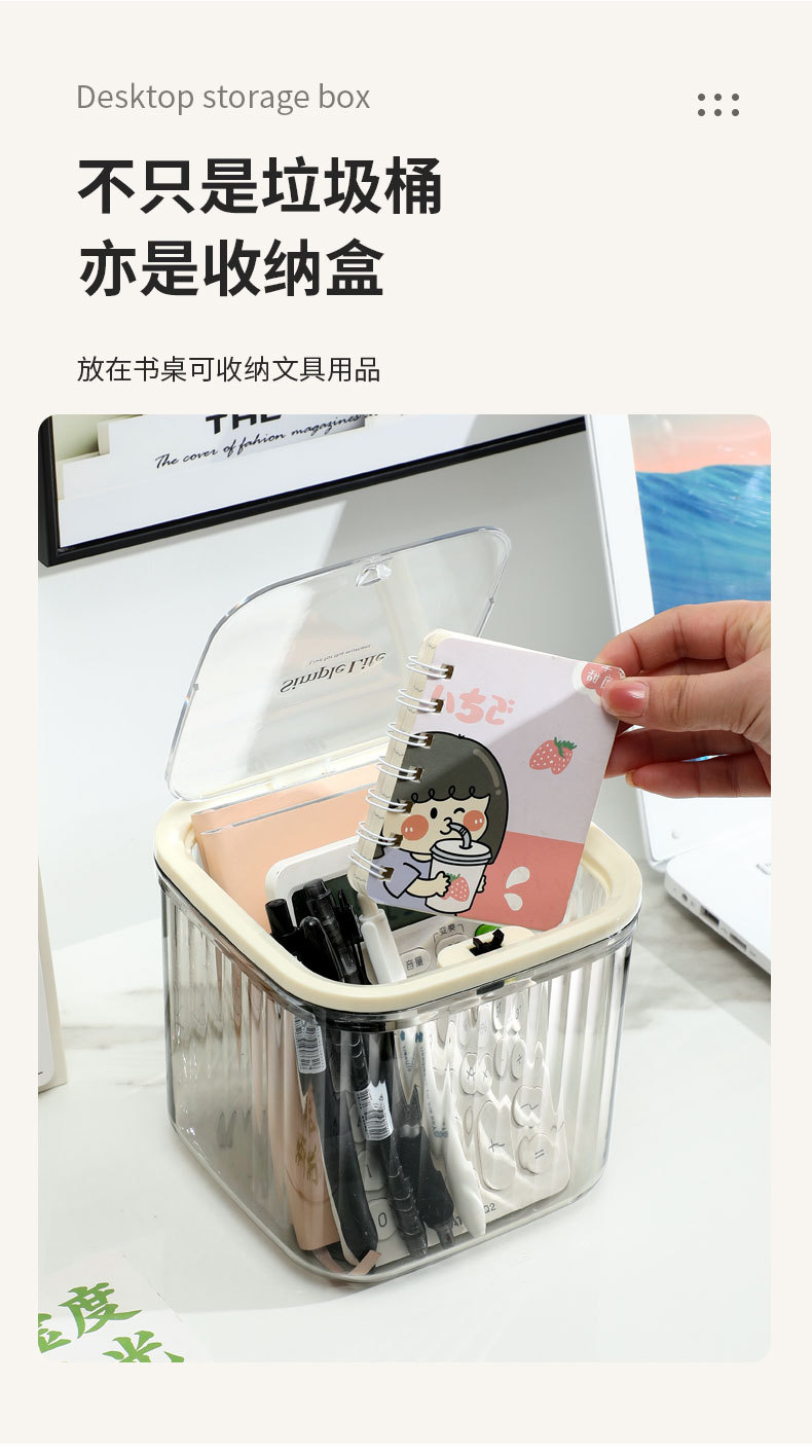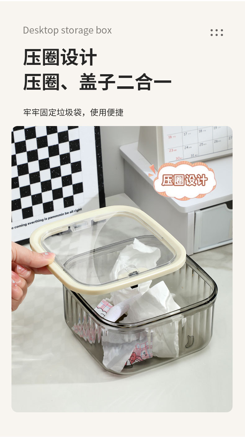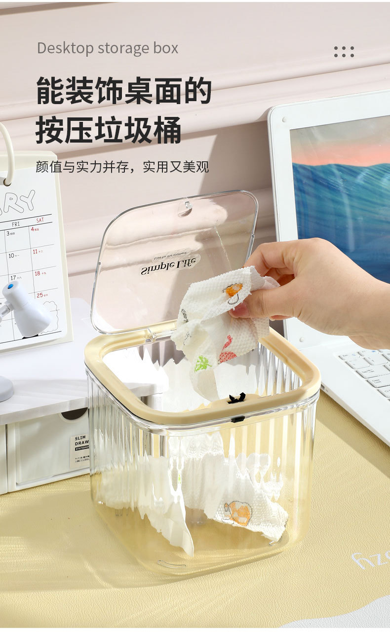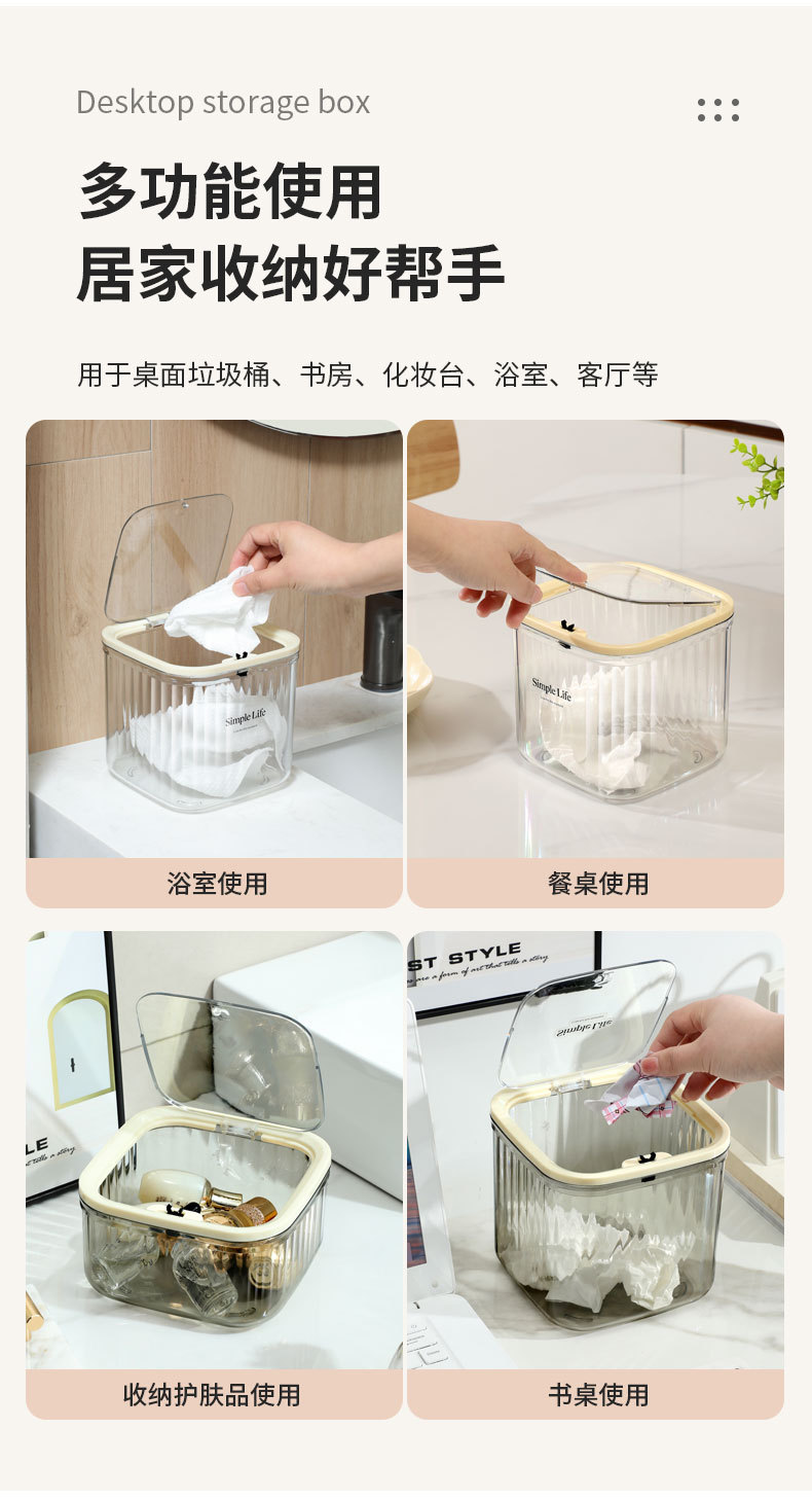 桌面弹盖收纳桶 桌面垃圾桶塑料透明垃圾桶 家用收纳盒 ins风高颜值创意按压带弹盖